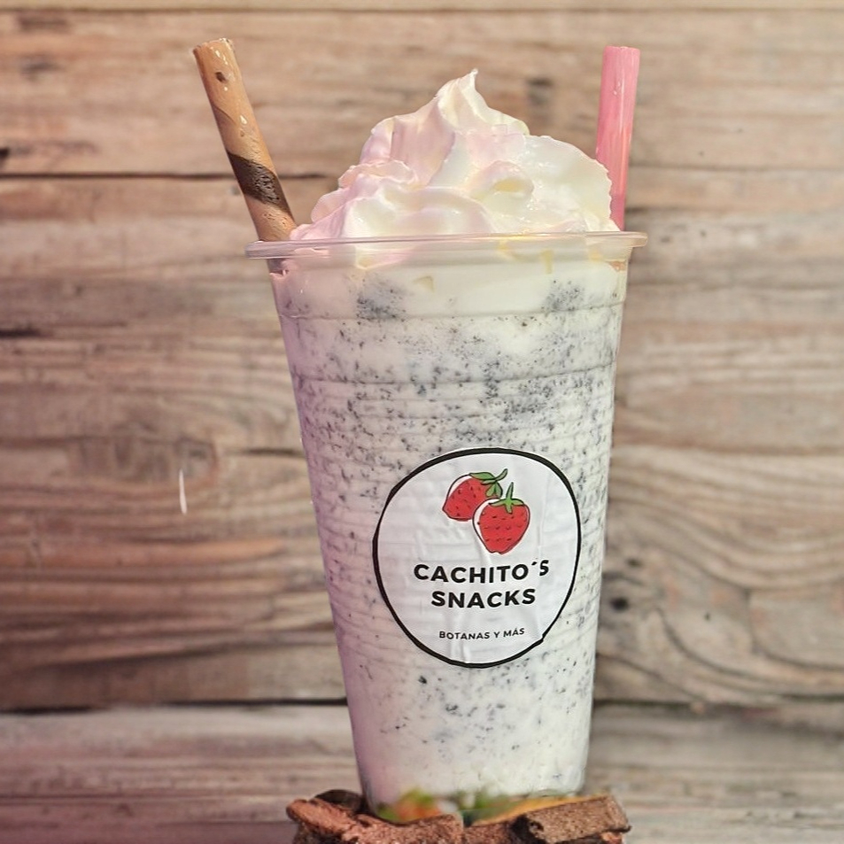 Café , leche , oreo, hielo, crema batida , vaso 14 oz