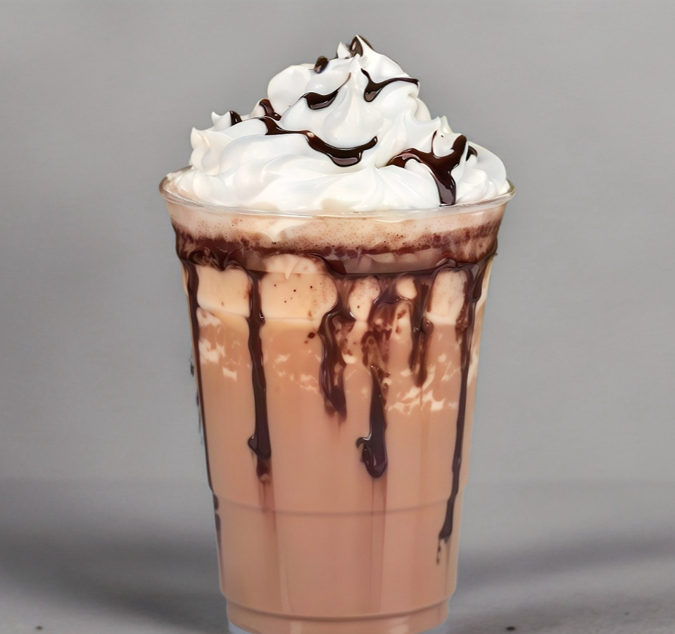 CAFE Moka , leche , hielo , crema batida , vaso 14oz