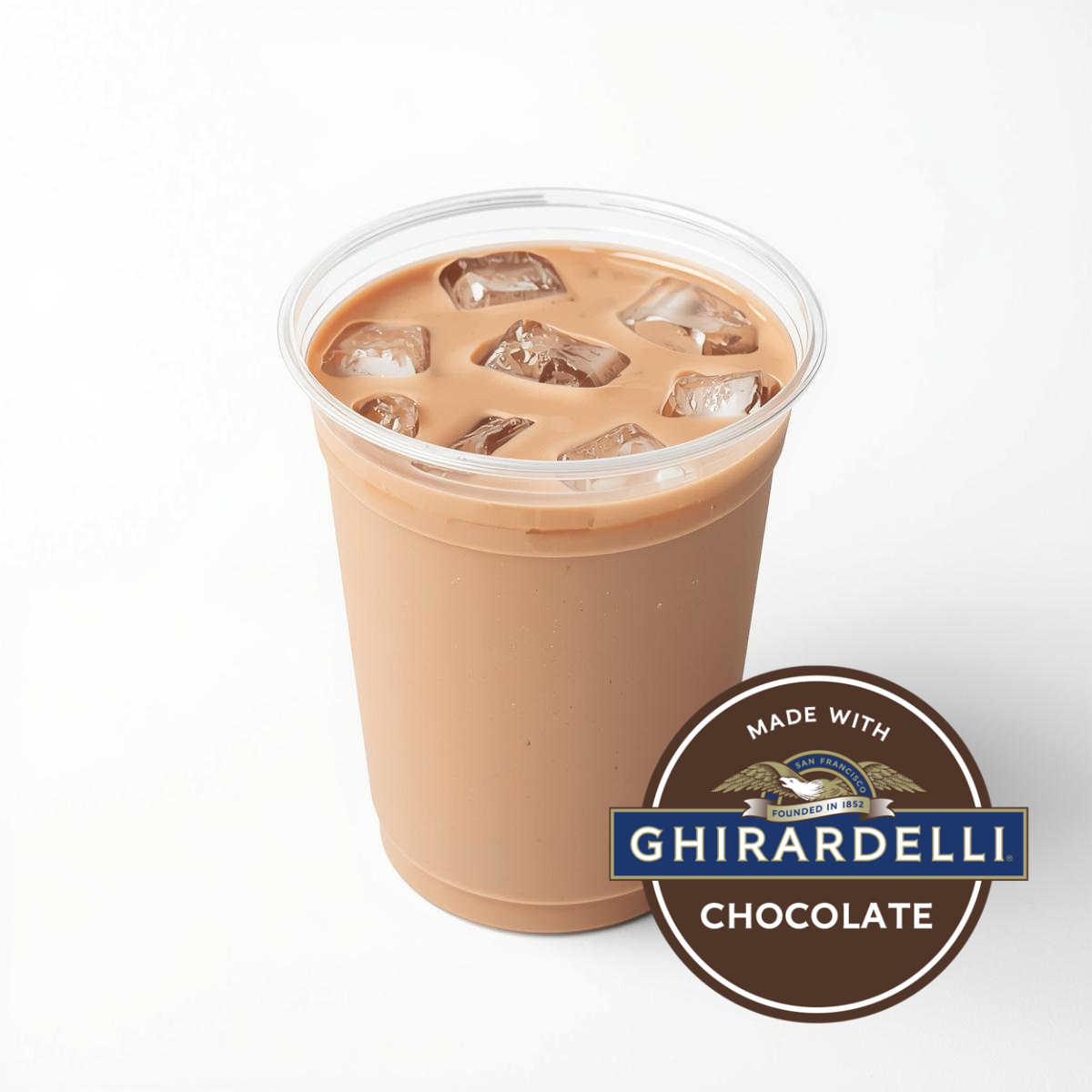 Chocolate en polvo premium "Ghirardelli" y leche entera de vaca mezclado cuidadosamente.