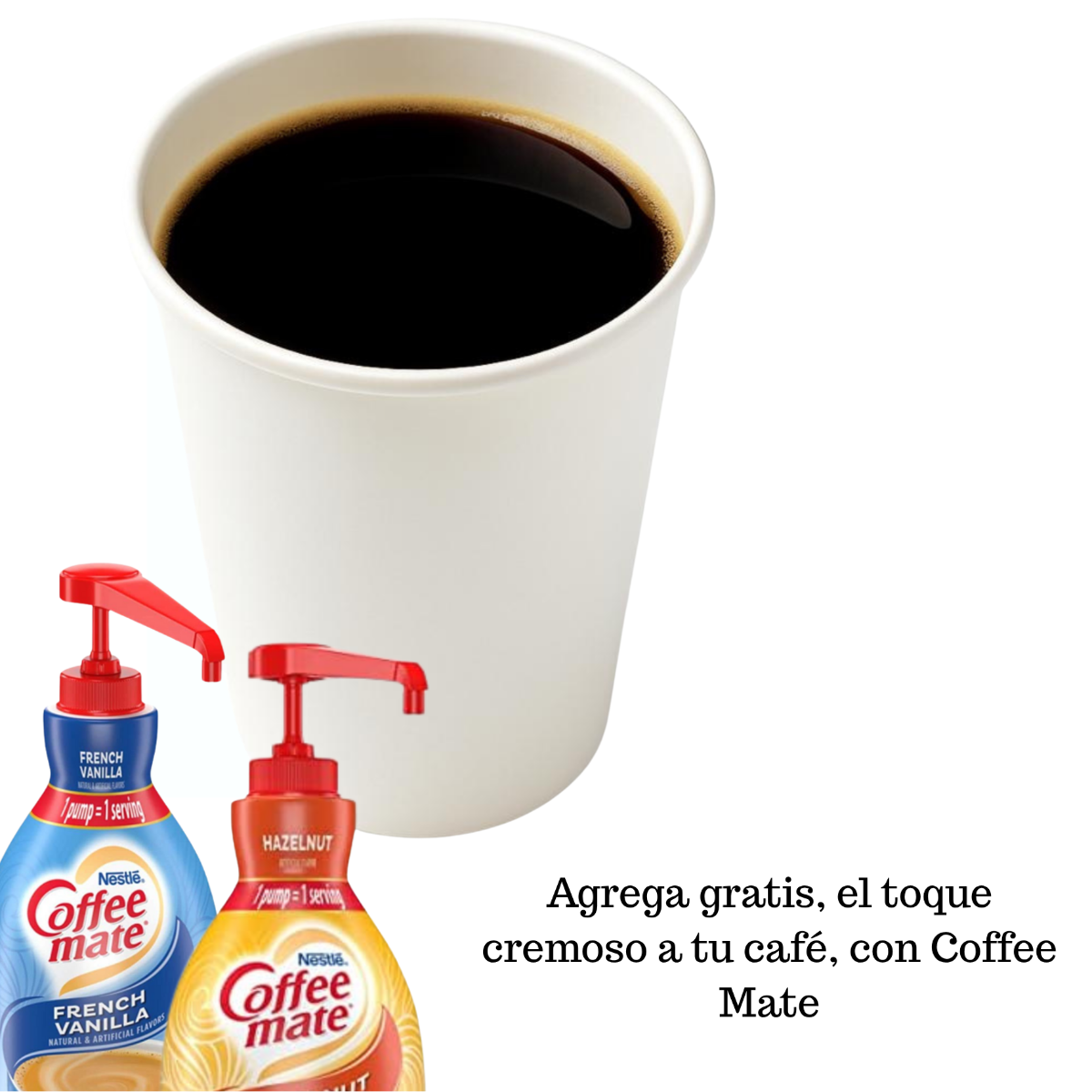 22oz de café de especialidad "Latitud" recien molido, extraído en cafetera, y dale el toque cremoso con la crema y sabor de Coffee Mate que más te gusta (Hazelnut y Vanilla)