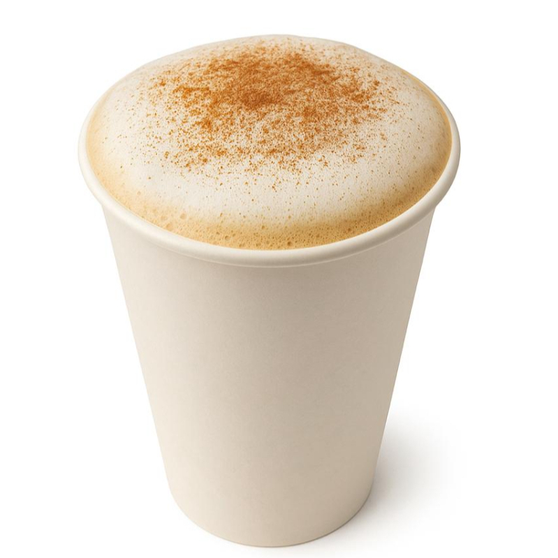 1 oz de café de especialidad "Latitud" extraído con nuestra Expobar, leche entera de vaca y un toque de polvos de canela molida