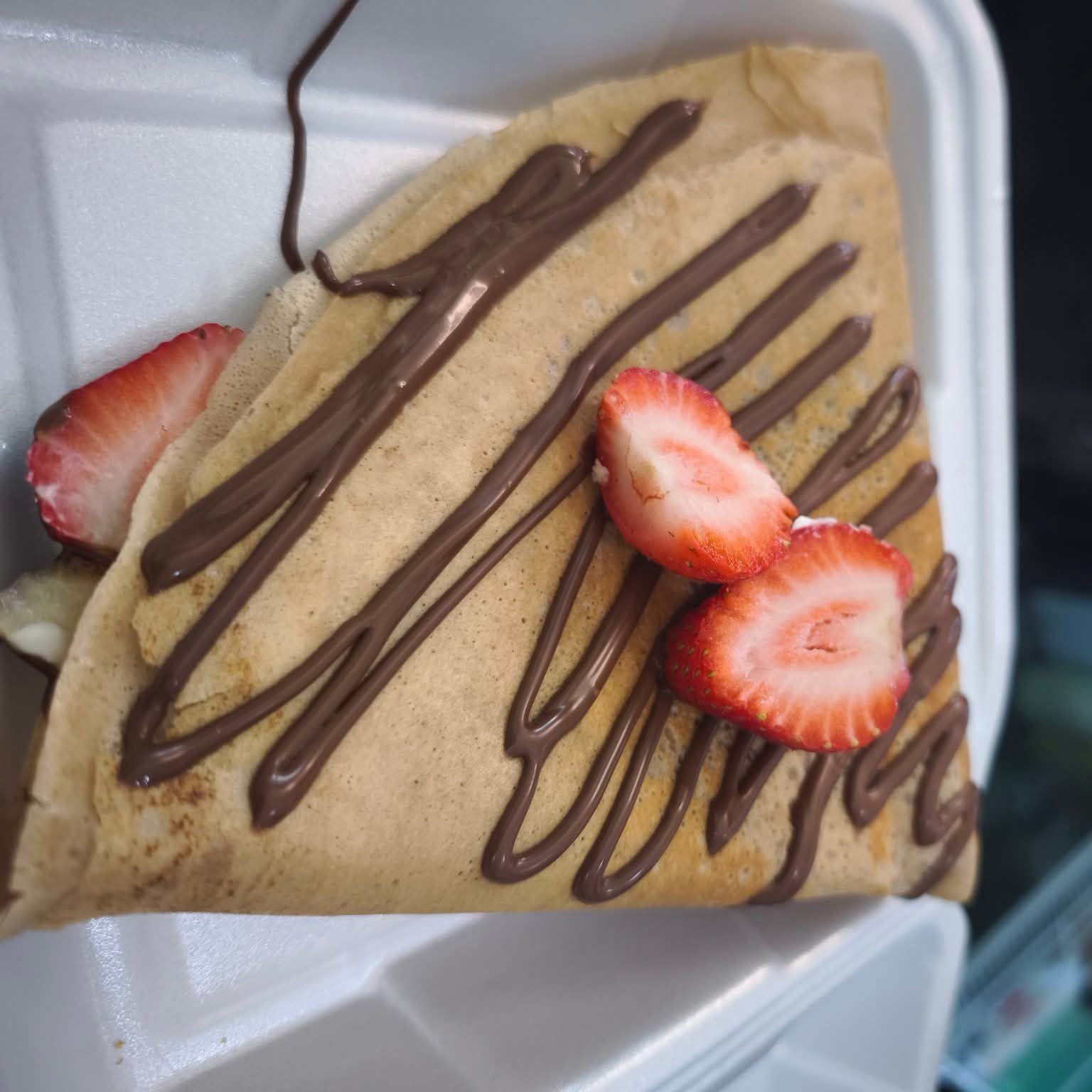 Crepa dulce acompañada de NUTELLA Y FRESA NATURAL.