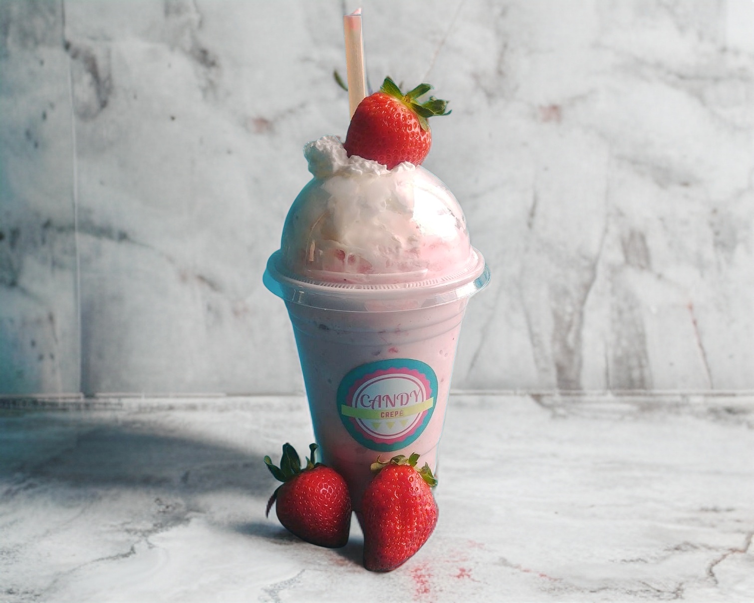 Latte sabor Matcha con una base de pulpa de fresa.(NO FRAPPE)