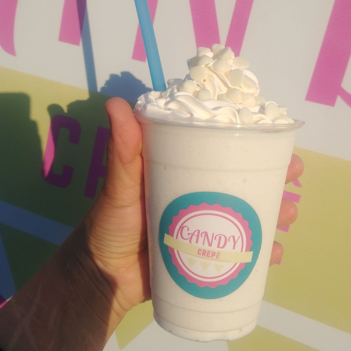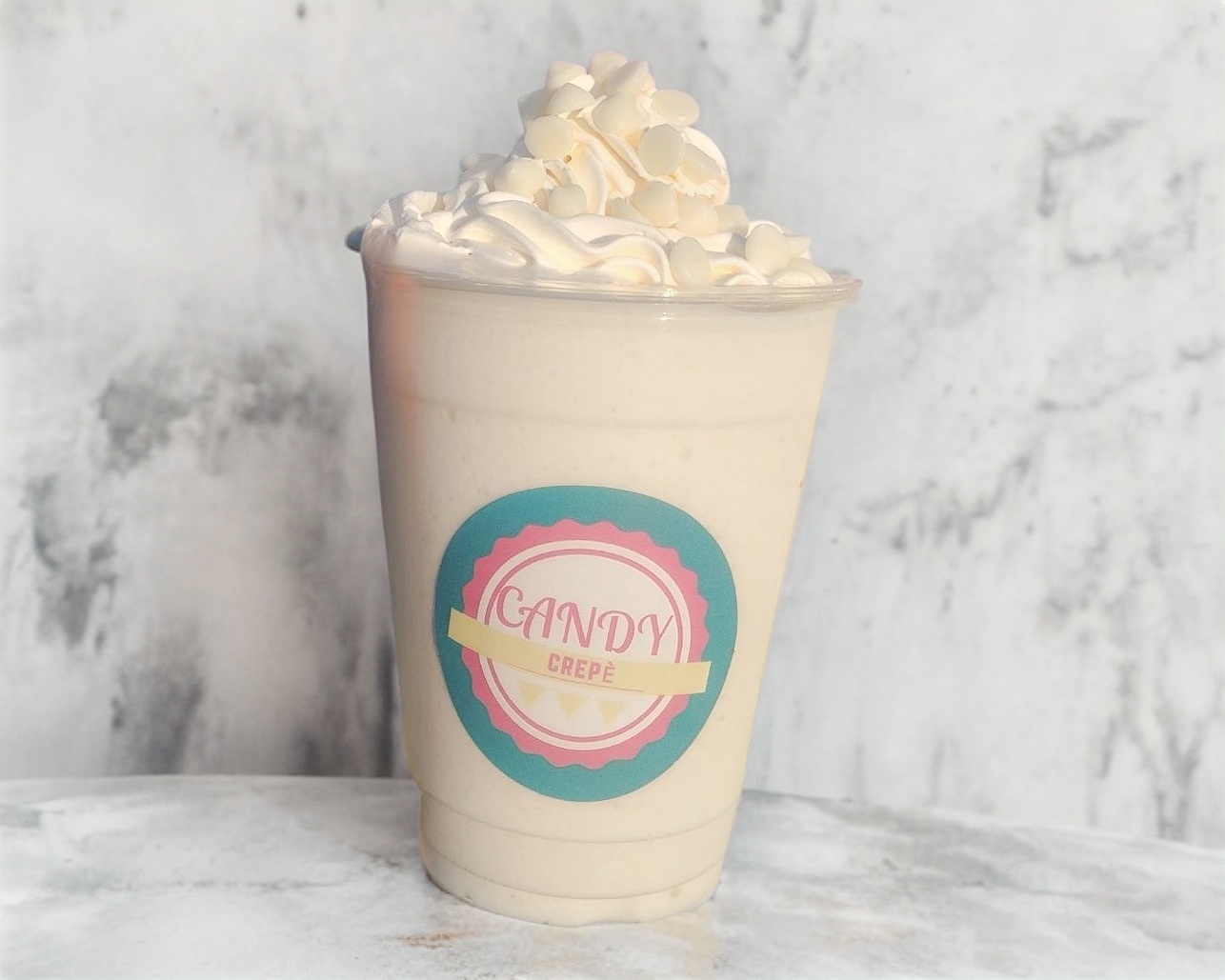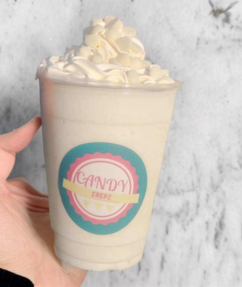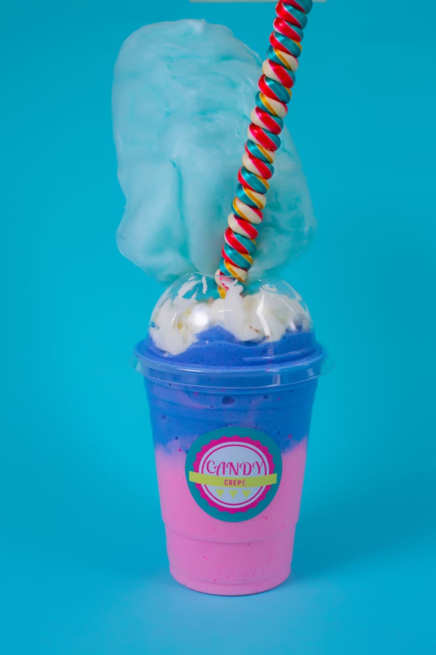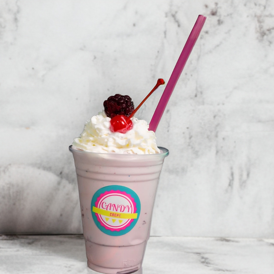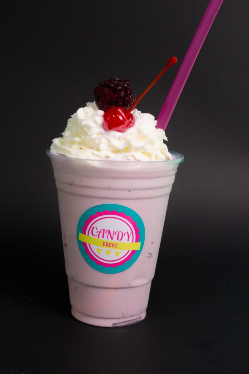 Latte con base de pulpa de blueberries, leche entera & espresso.