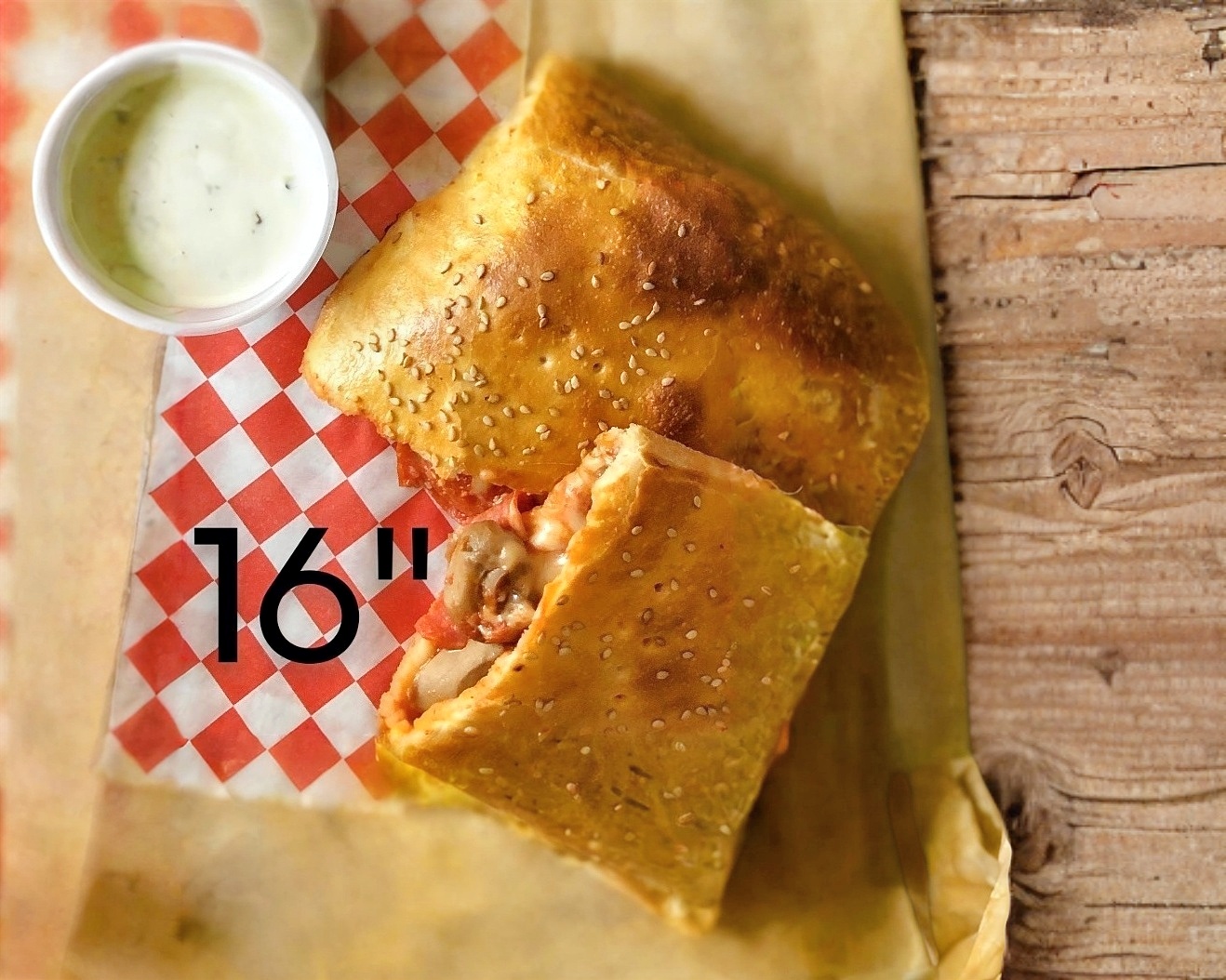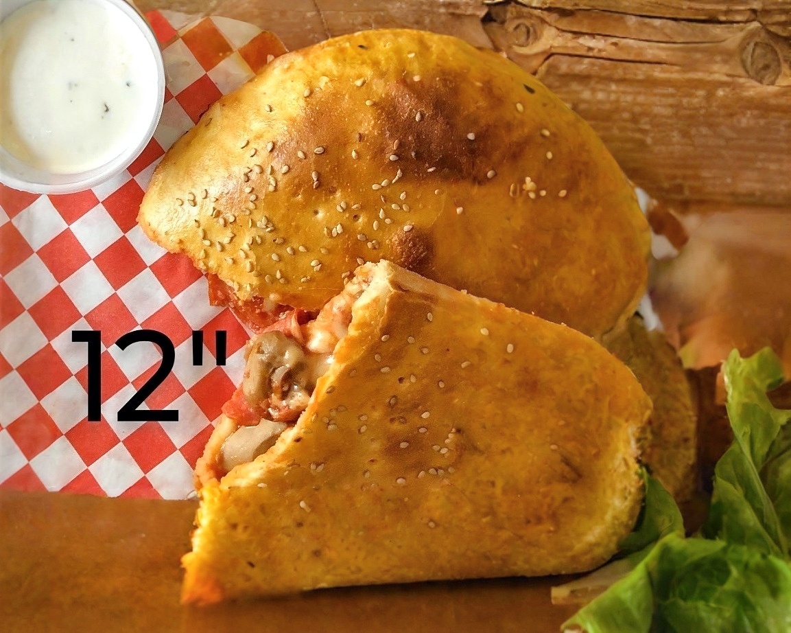 Platillo para una persona, Pizza Calzone preparado con masa fresca, salsa de tomate, queso mozzarella, pepperoni y un segundo ingrediente a su elección