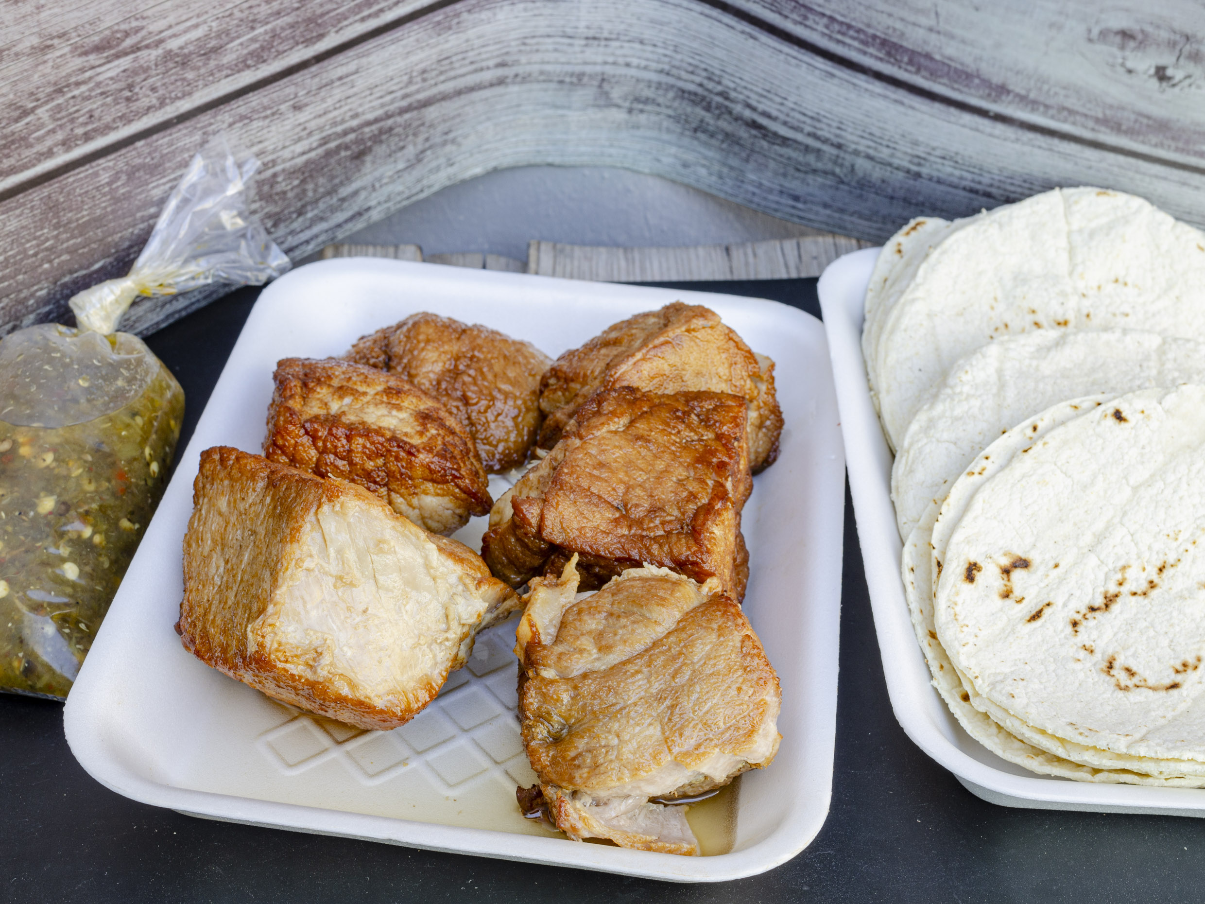 500. Gramos Chicharron, 1 Paq. Tortillas Maiz, 1 Salsa Verde
