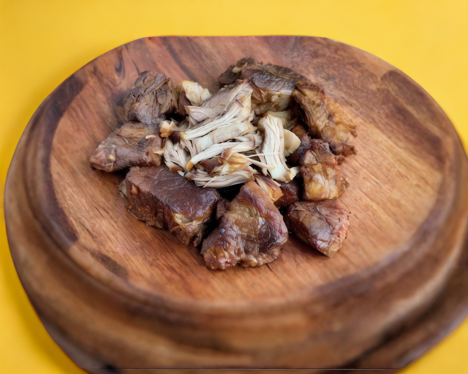 Medio kilo de deliciosa Barbacoa de res (labio) acompañadas de tortillas, Salsas, cebolla, cilantro y limones