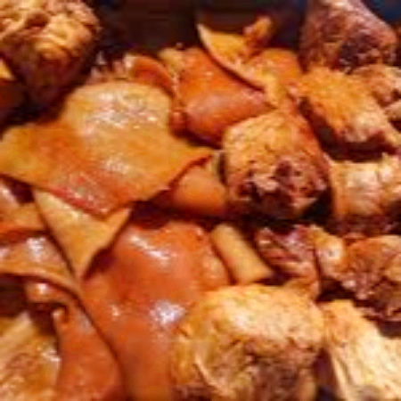1 kilo de chicharon delicioso y acompañado de Salsas y tortillas.