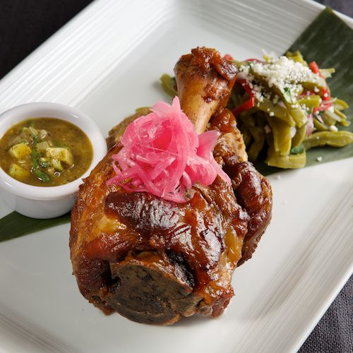 Delicioso Chamorro acompañados de Tortillas, salsas, cebolla, cilantro y limones