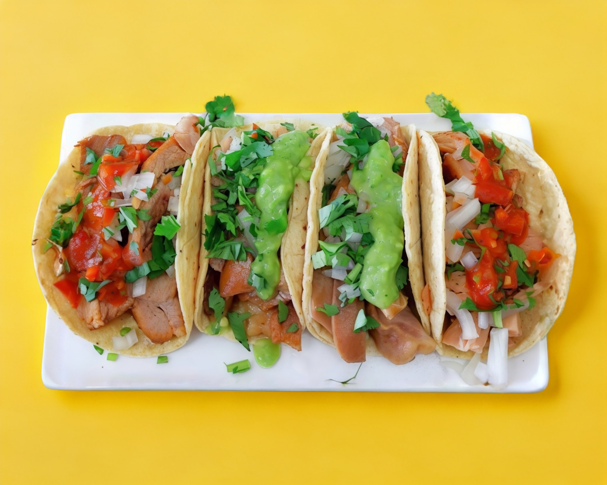 Orden con 4 tacos de surtida (pierna, chamorro, cuerito)