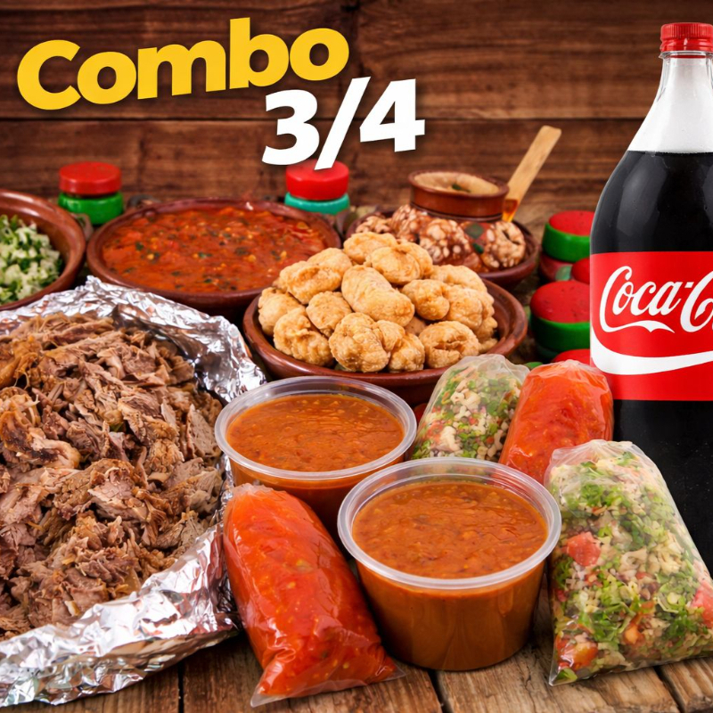 1/4 Chicharrón*1 + Soda de 1.75*1 + ¼ Frijoles puercos*1 + ¾ Carnitas*1