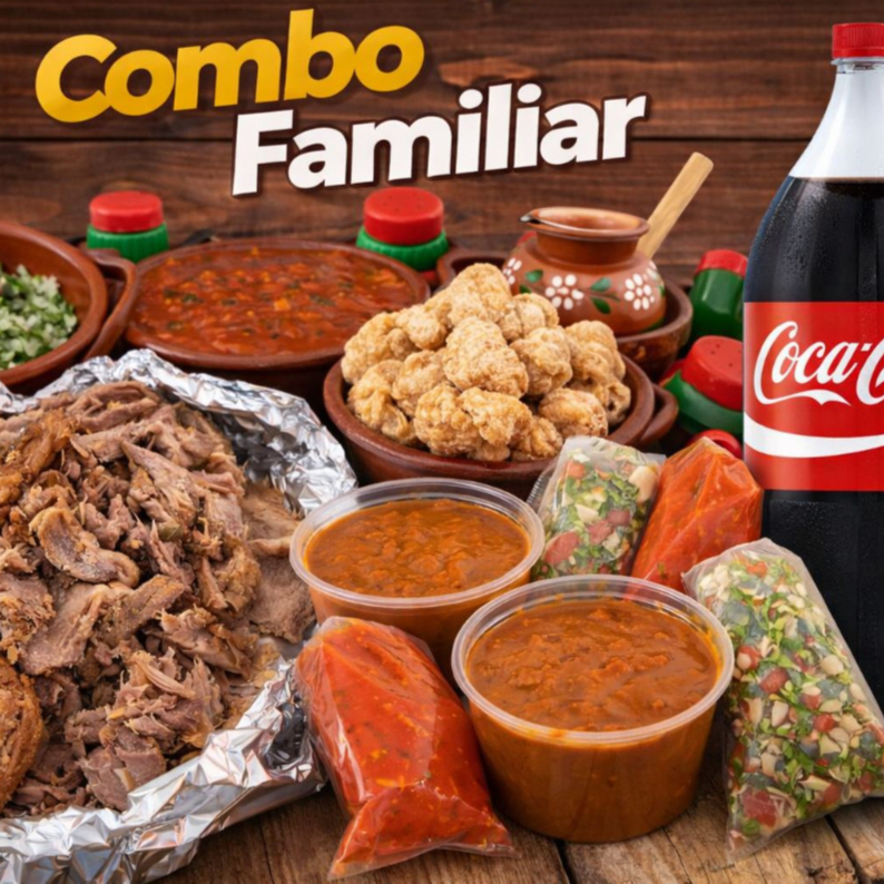 1/4 Chicharrón*1 + Soda de 1.75*1 + ¼ Frijoles puercos*1 + 1 Kilo Carnitas*1