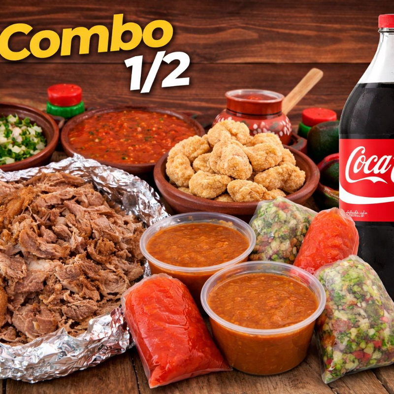 1/4 Chicharrón*1 + Soda de 1.75*1 + ¼ Frijoles puercos*1 + ½ Carnitas*1