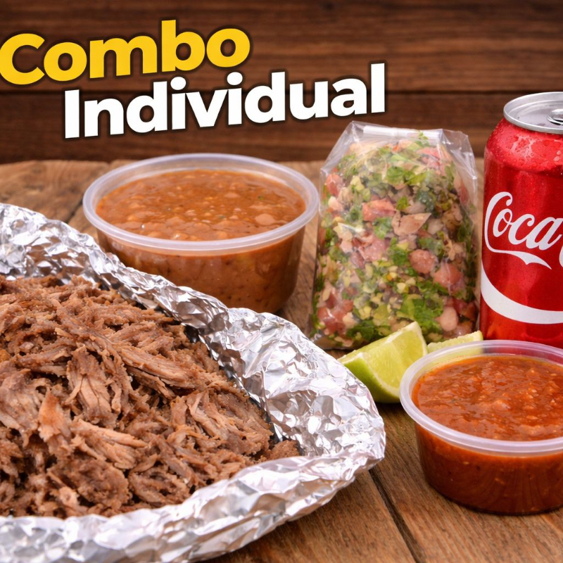Soda de lata*1 + ¼ Frijoles puercos*1 + ¼ Carnitas*1