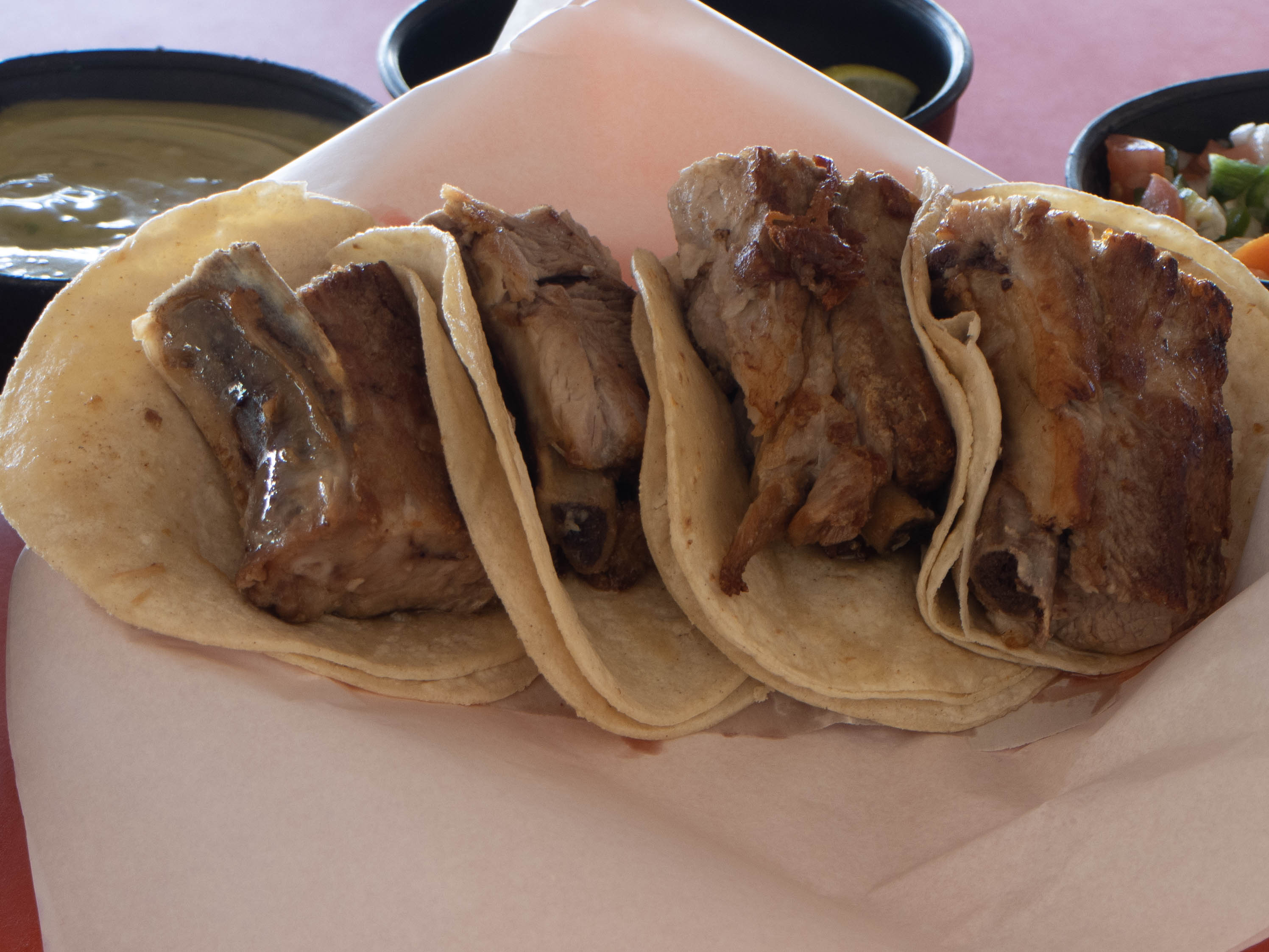 Orden d chamorro cn cuerito 4 tacos verdura salsa