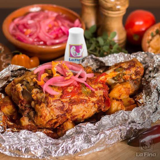 Chamorro Adobado al vapor con tortilla salsa roja y verde , cebolla y cilantro con limón