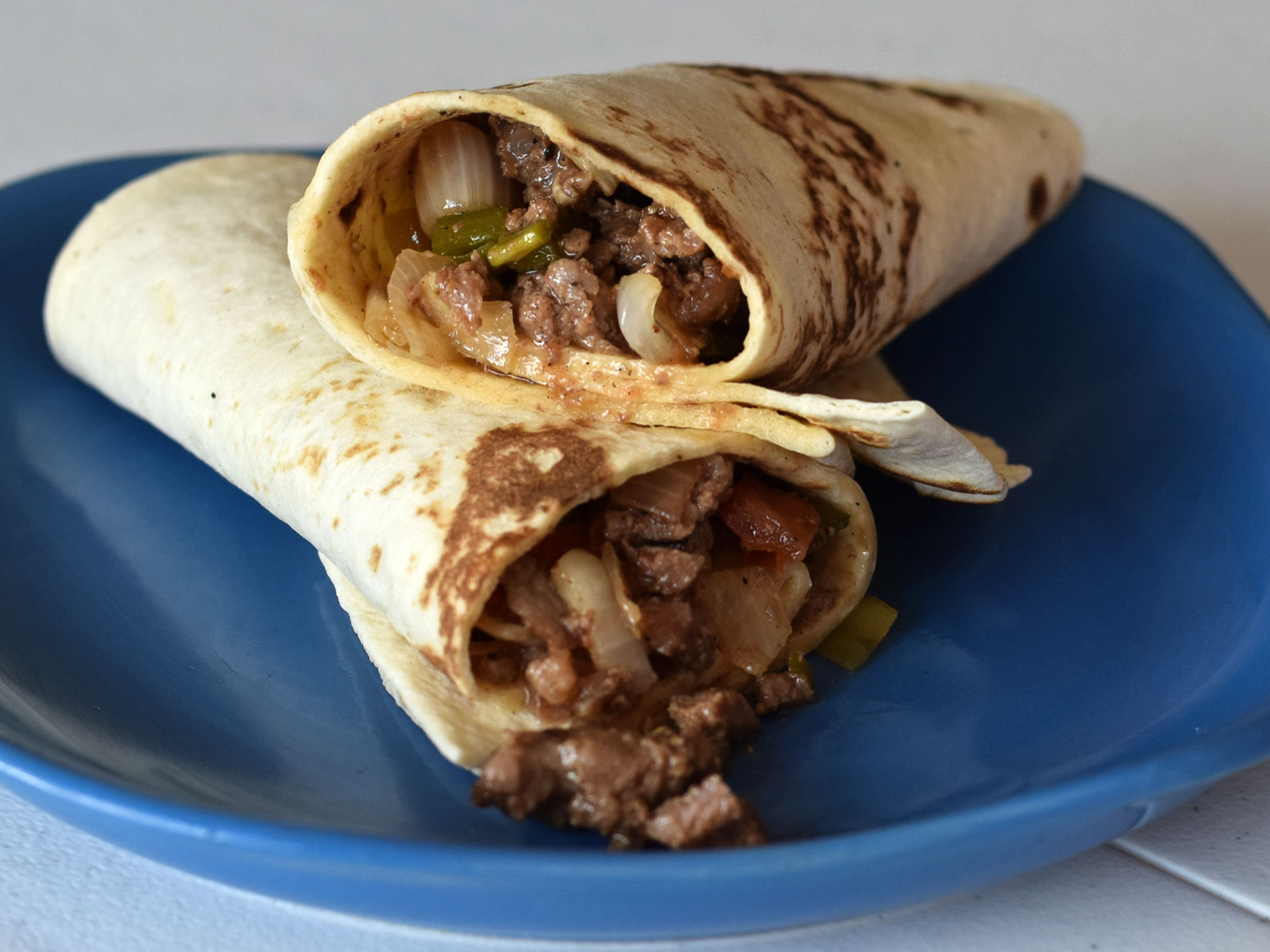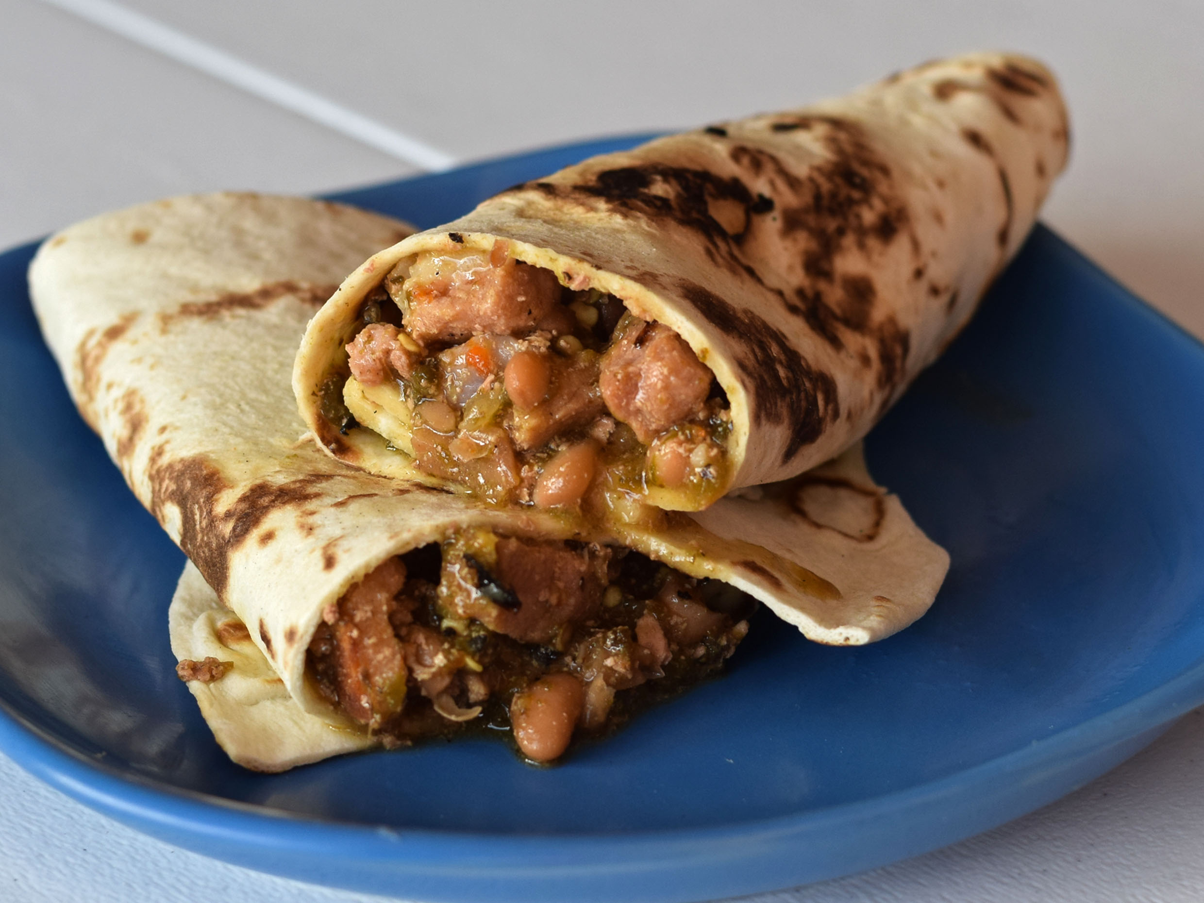 Disfruta de un burrito con 80 gr de carne de res y 20 gr de papas en salsa verde.