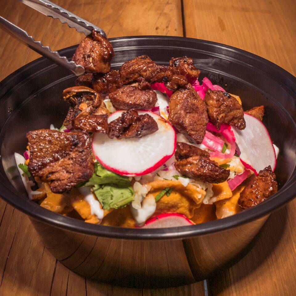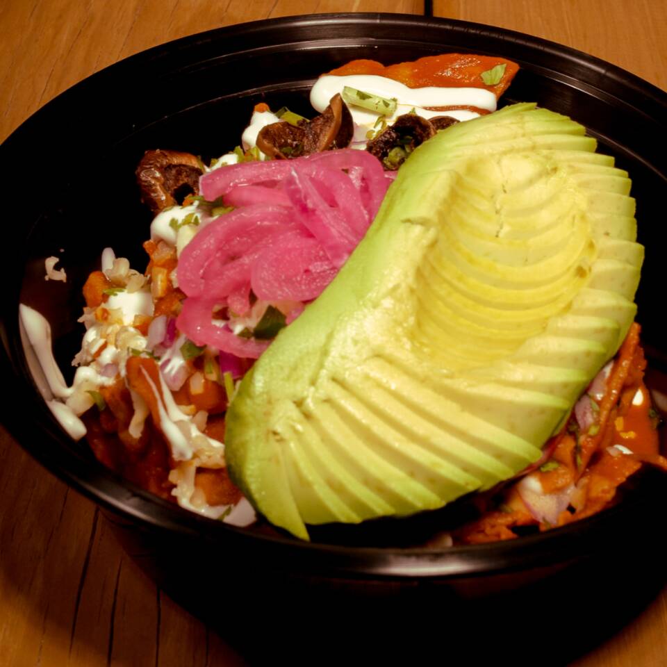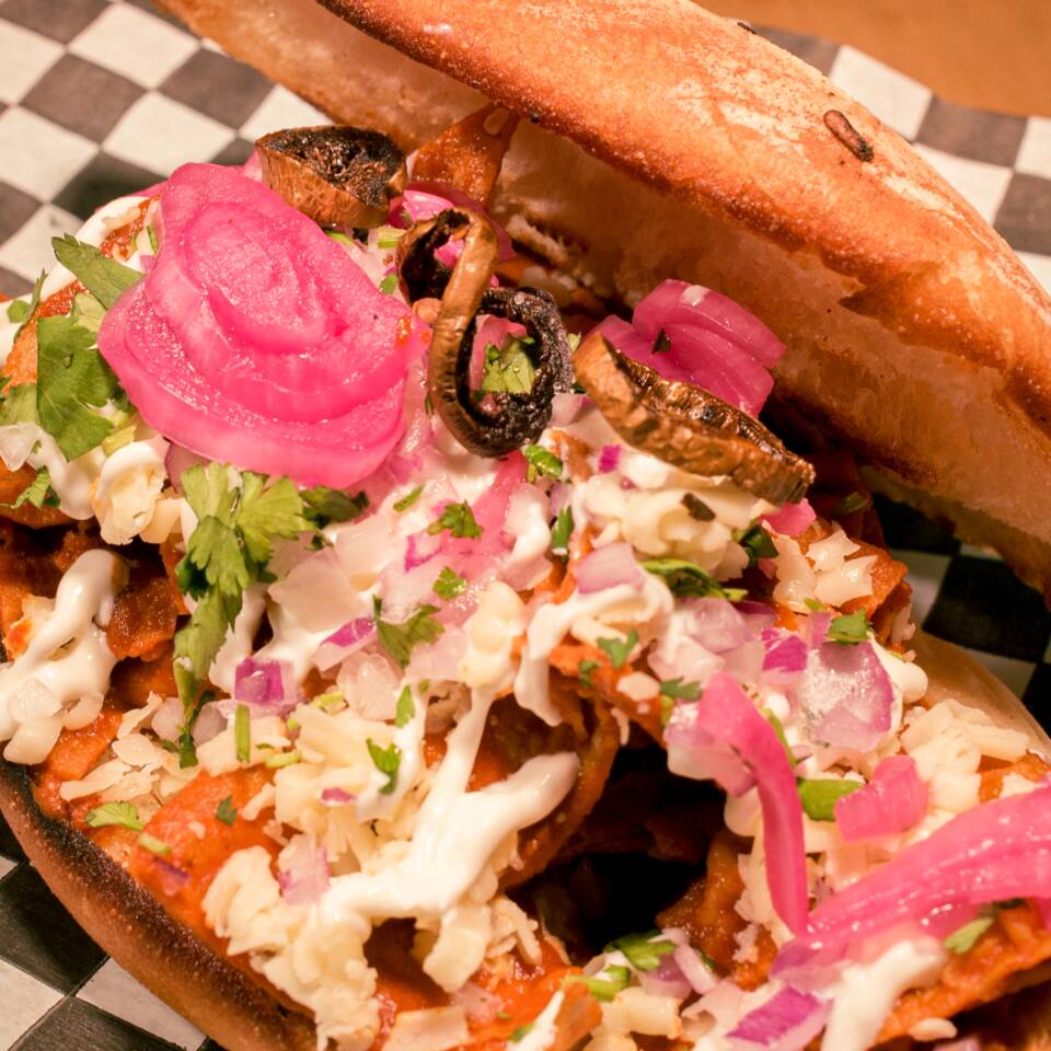 Delicioso pan Lagunero, relleno de totopos bañados en tu salsa favorita! Pidelos con pollo o huevo y armalo como a ti te gusta.