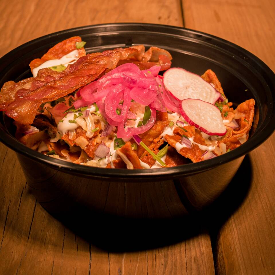 Chilaquiles Deliciosa salsa a base de chile guajillo, colorin y chile de arbol para ese picor delicioso.
