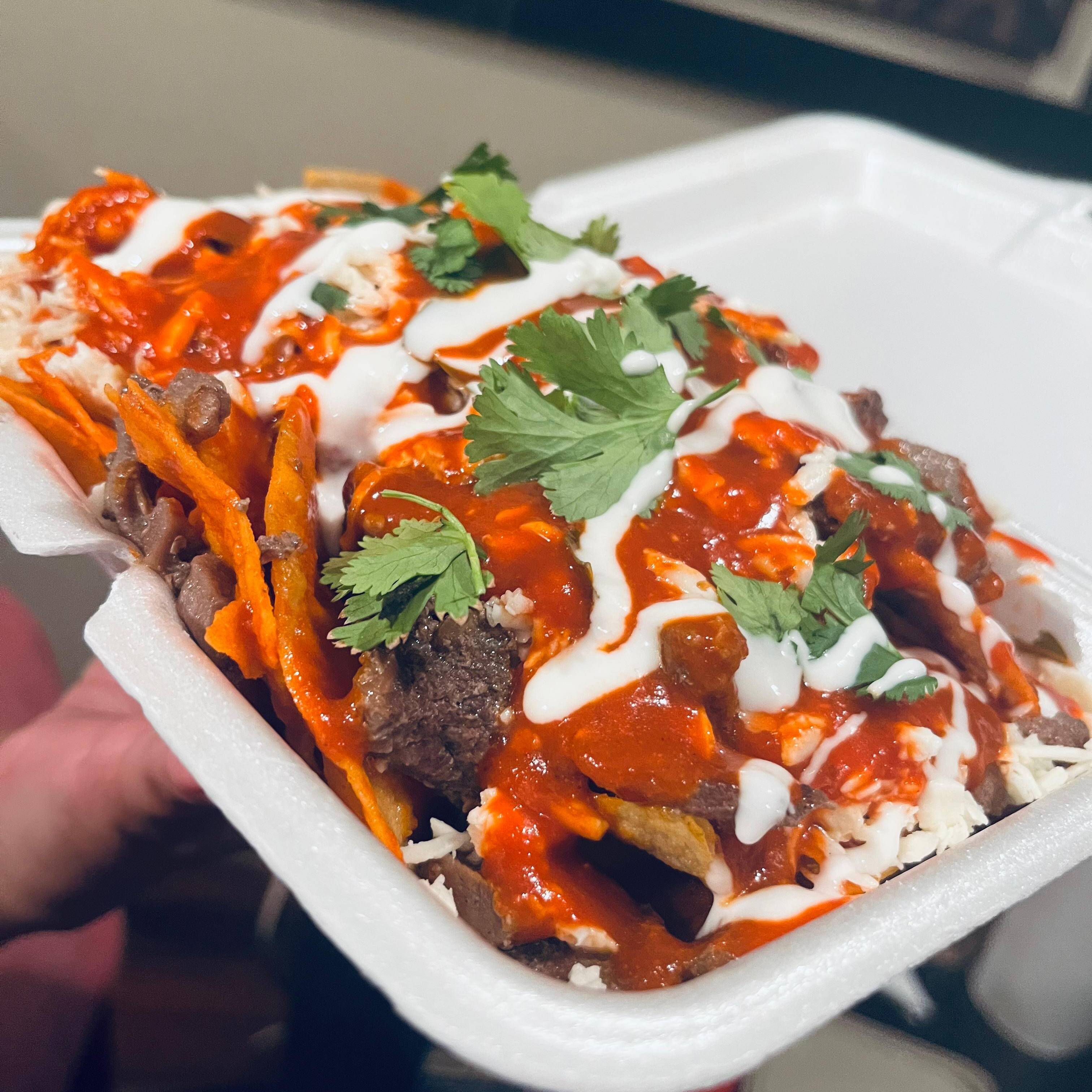 queso, con bistec o pollo a elegir cebolla y cilantro a parte