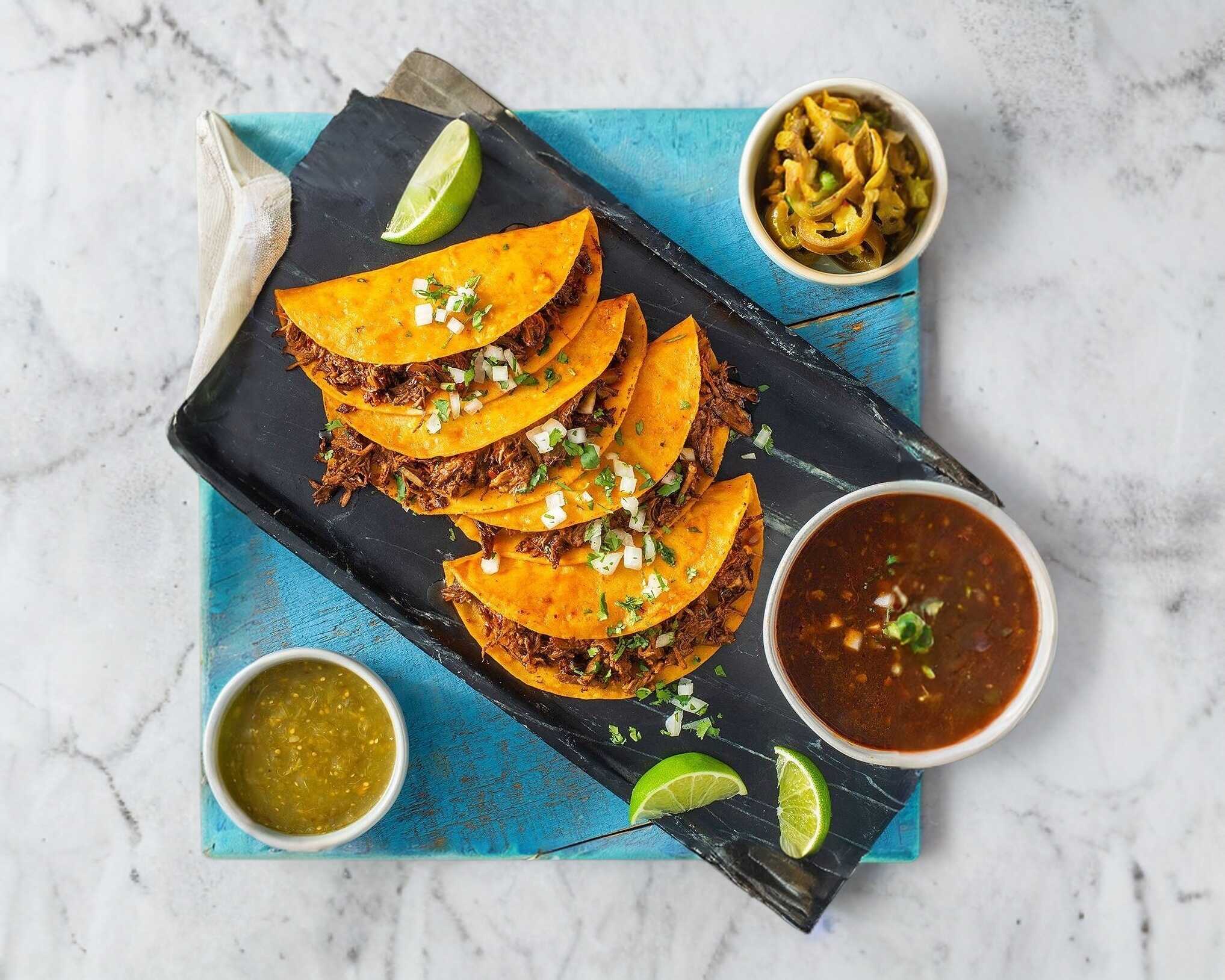 4 Deliciosos Tacos de Birria acompañados de su consome (11 oz)