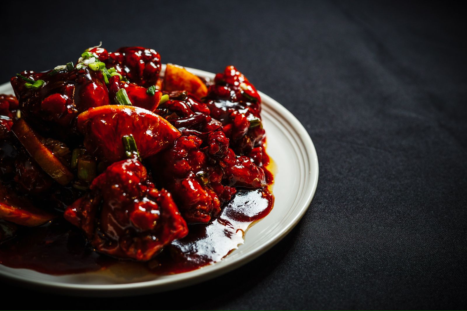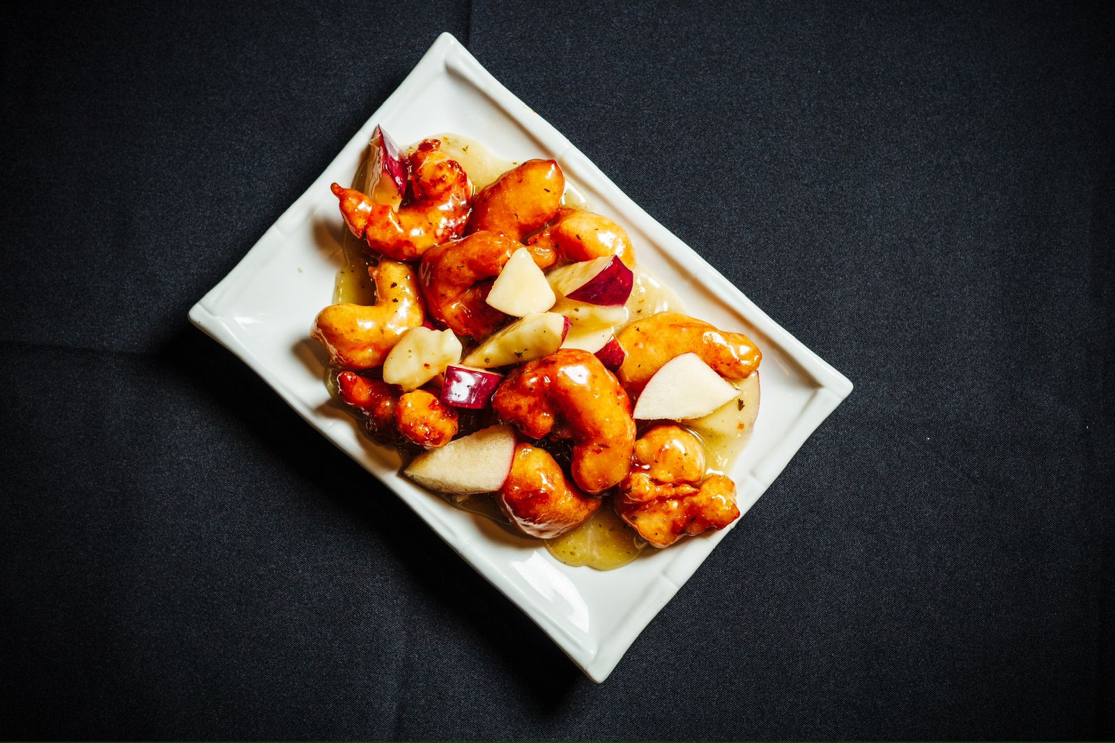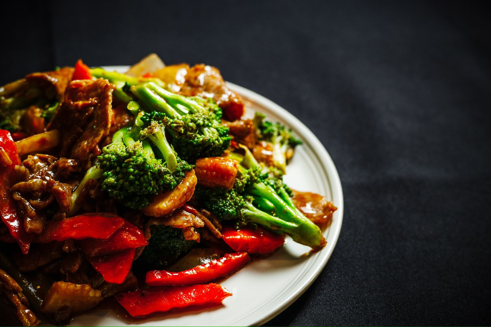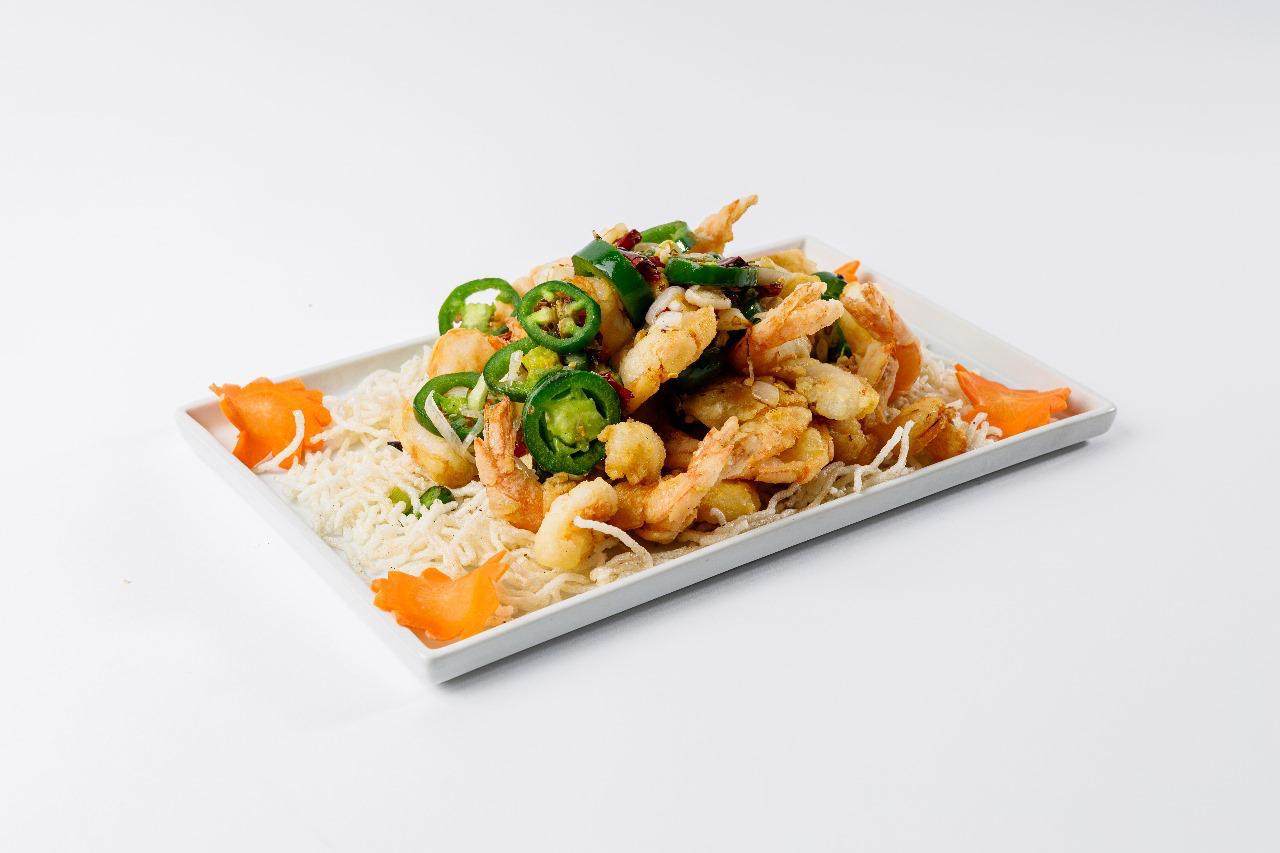 Arroz frito o Lomelin de Vegetales, 3 guisos, 2 Rollos primavera y Chile Amor