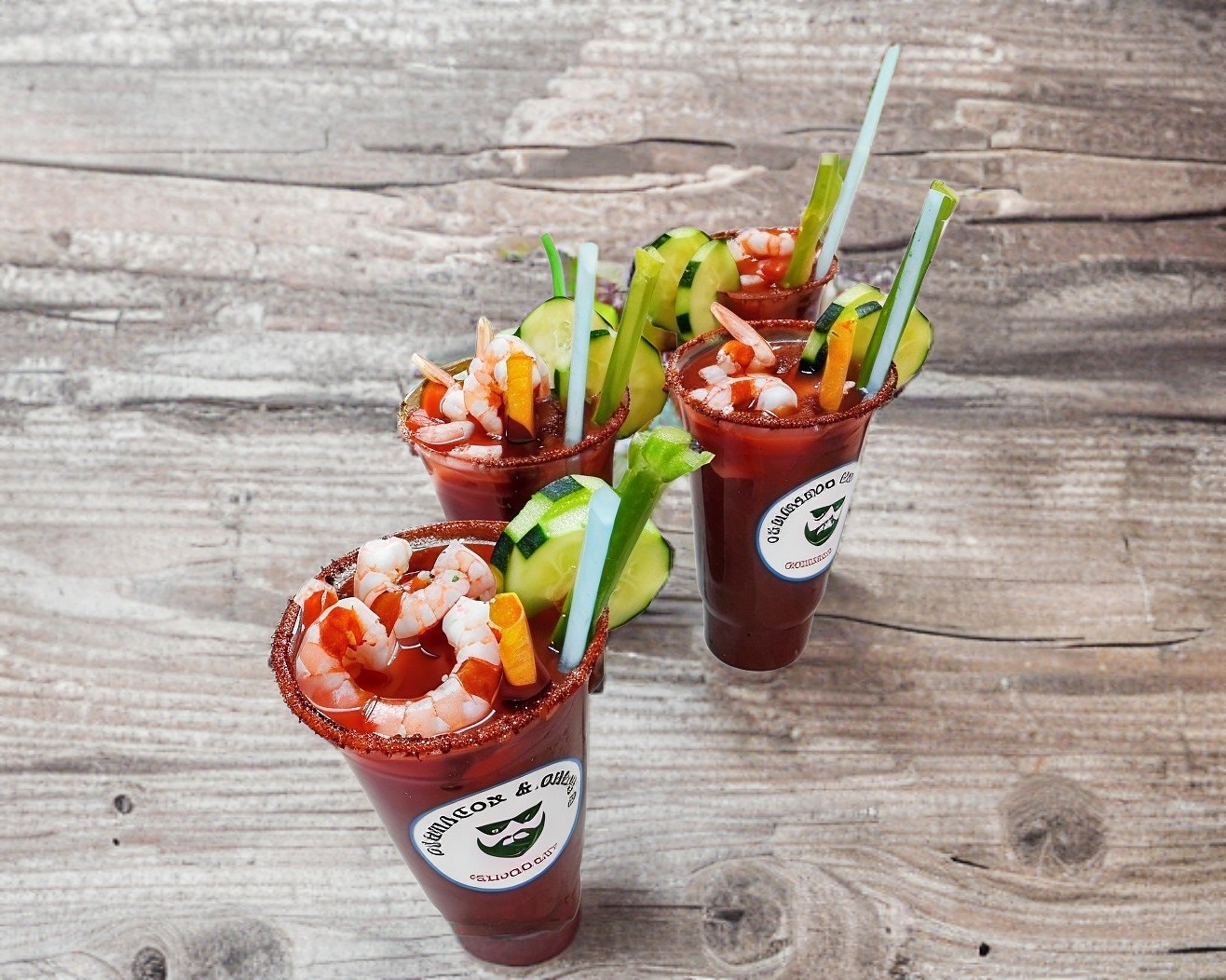 1 L de clamato preparado con camarón cocido en agua, lleva salsas de la casa, limón, sal, pimienta, pepino en rodaja, banderilla de tamarindo y apio.