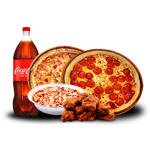 Pizza Pepperoni*1 + Boneless 350 g en Crudo*1 + Espaguetti*1 + Arma Tu Pizza (Hasta 6 Ingredientes)*1 + Refresco 2 Litros*1