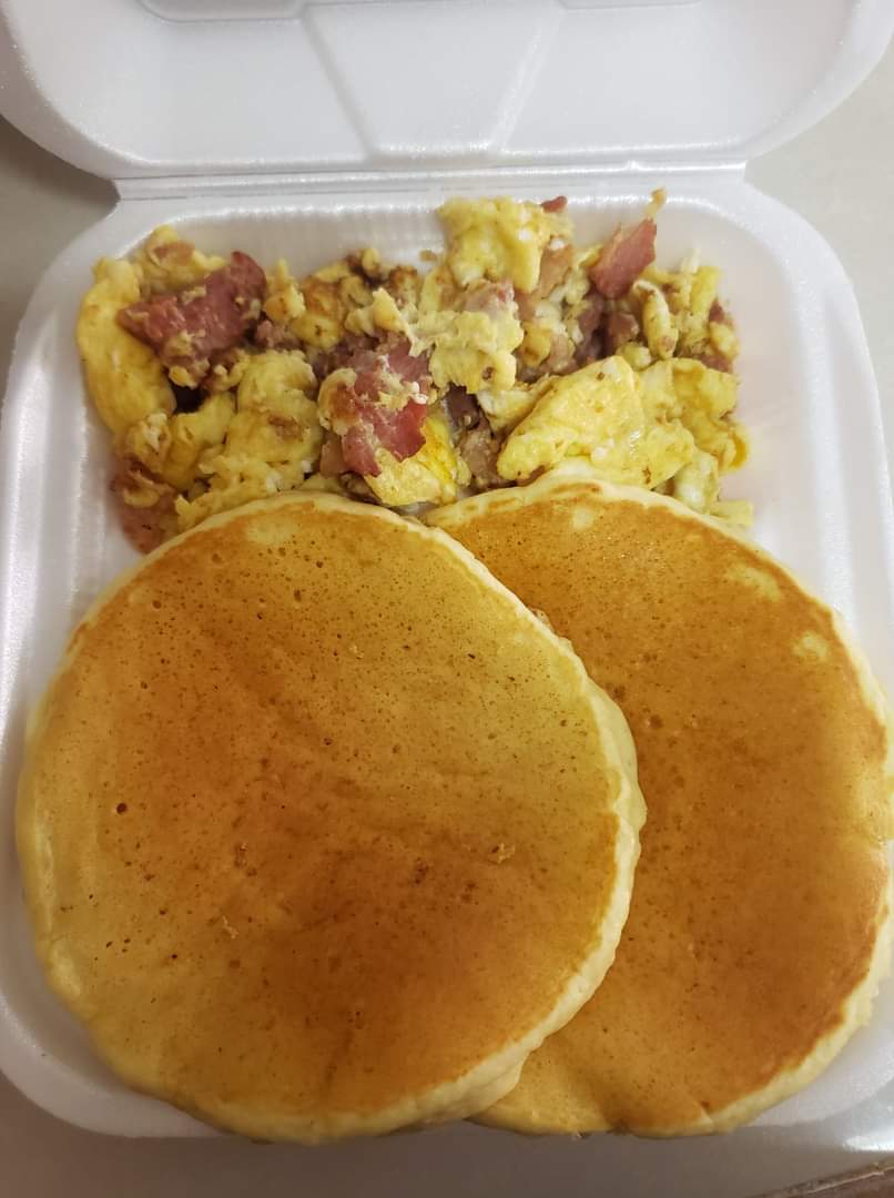 Ricos hot-cakes acompañados con rico huevo al gusto, puede ser jamón, chorizo, tocino, a la mexicana acompañado con tortillas miel y mantequilla.
