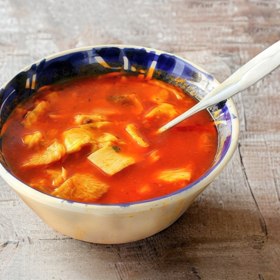 Ricas fajitas de pollo a la plancha acompañadas de sopa del día, frijoles, tortillas y salsa.