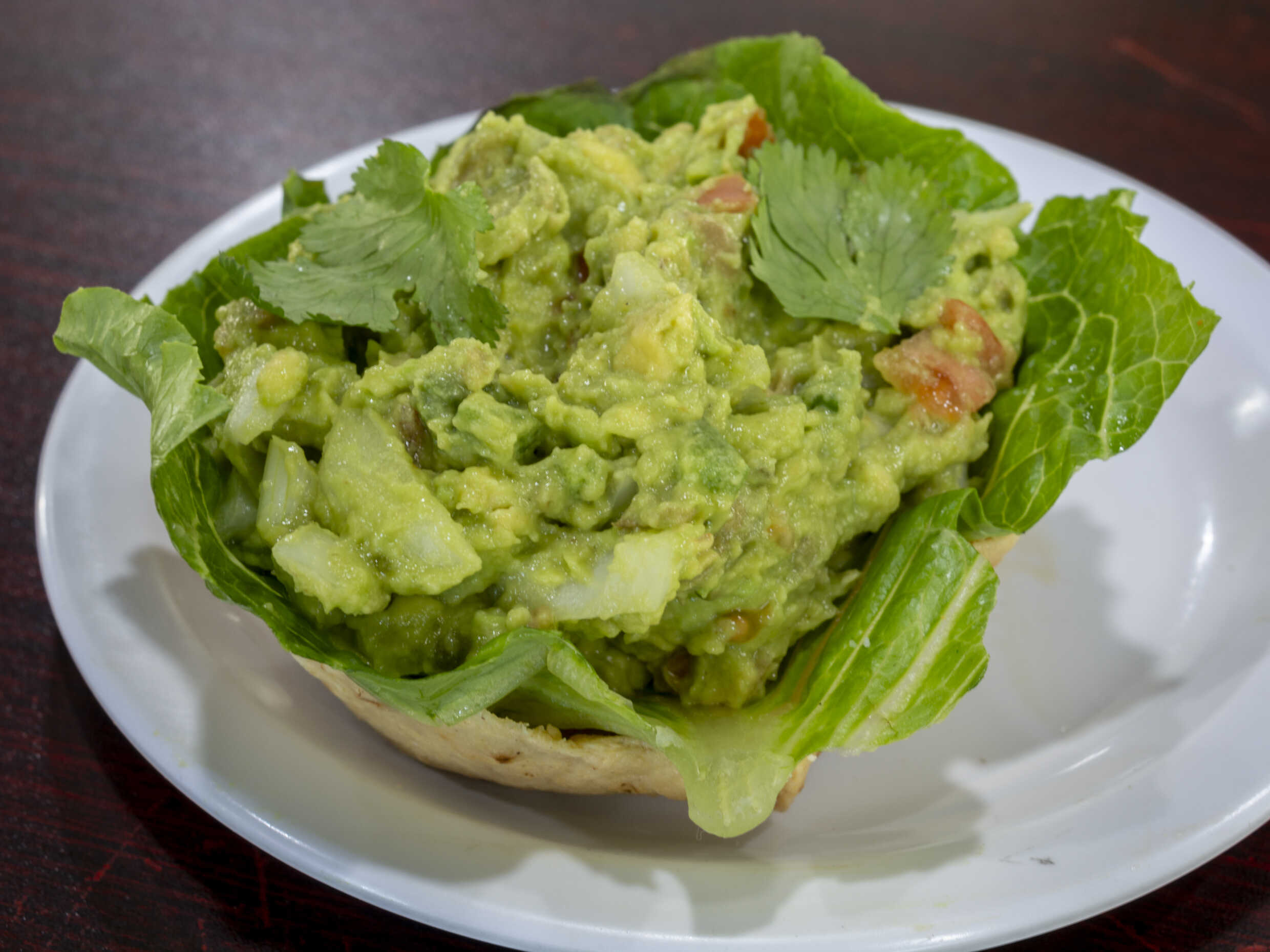Lechuga, tomate, aguacate, cebolla y deshebrada.