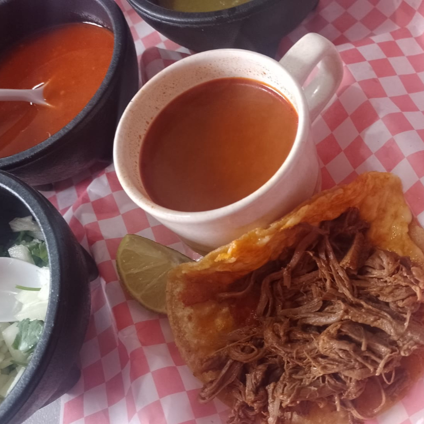 1/2 LITRO DE BIRRIAMEN + 2 PZAS DE QUESABIRRIAS Incluye cilantro, salsa roja y limón
