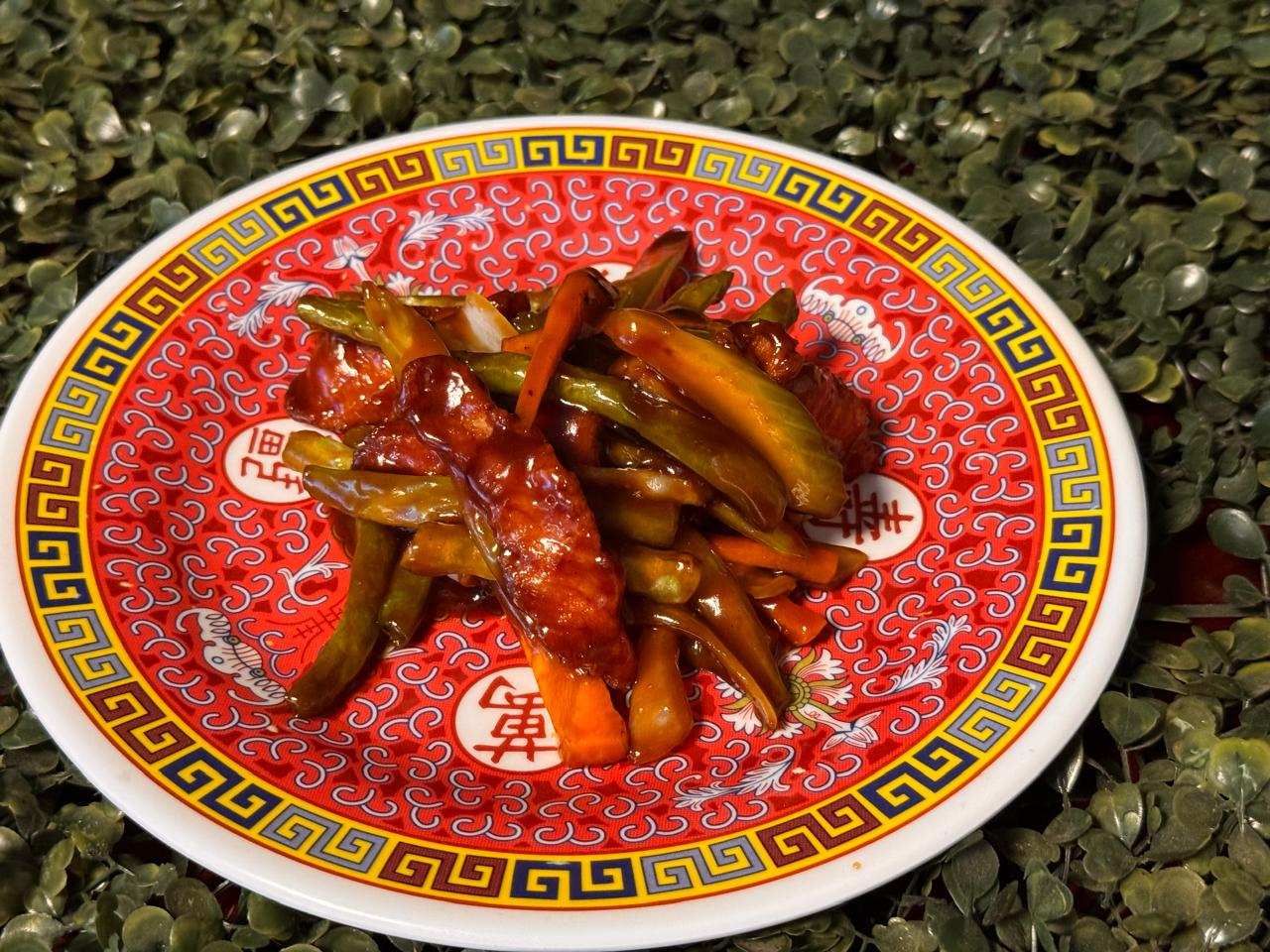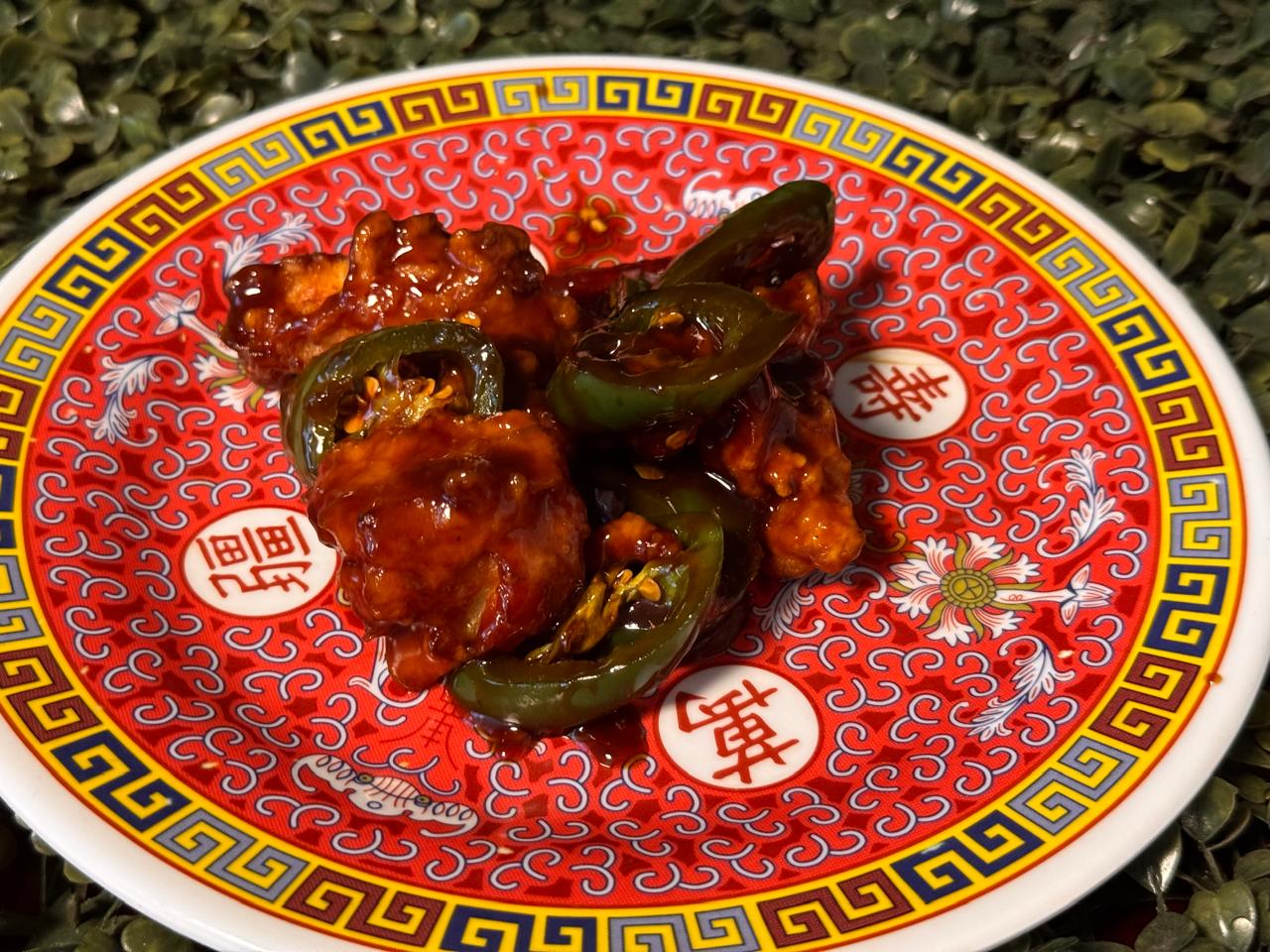 Pollo estilo chino bañado en salsa de ostión con un toque picante de jalapeño.