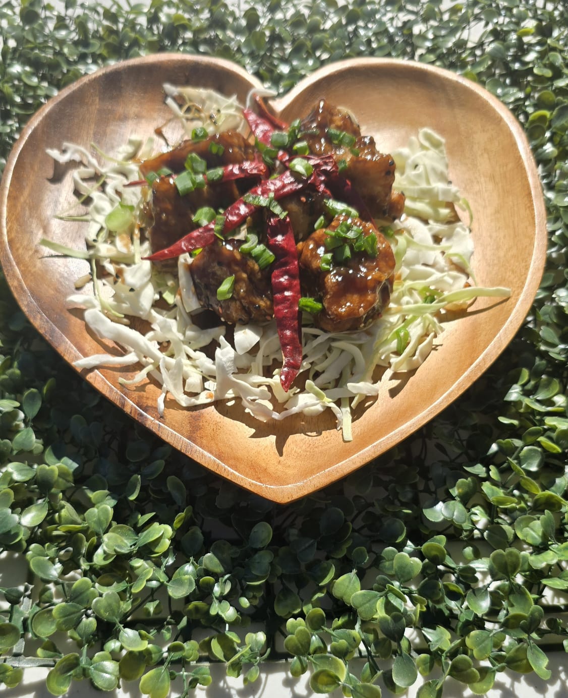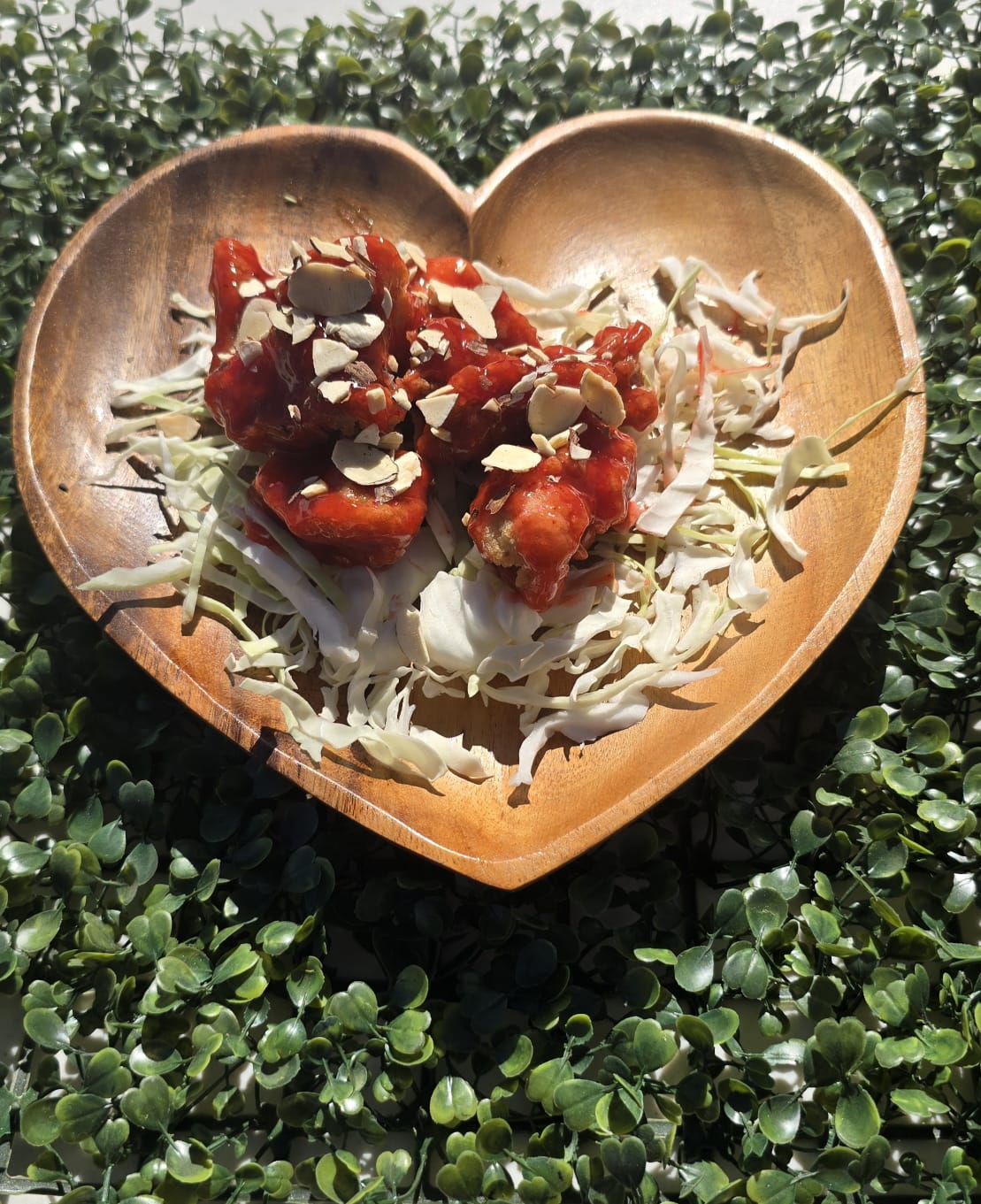 Pollo estilo oriental bañado en una salsa cítrica agridulce.