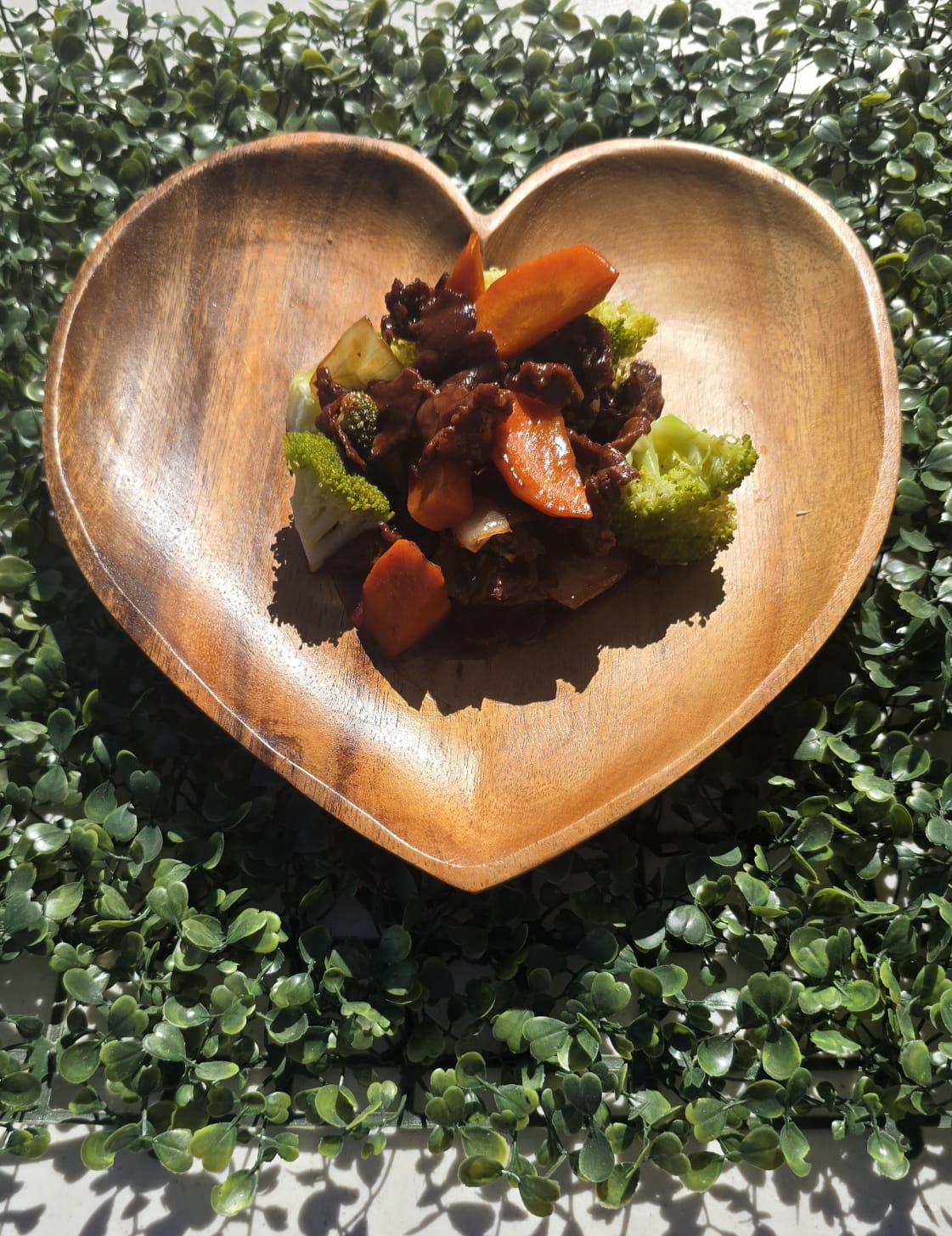 Mix de verduras salteadas en una rica salsa de la casa. Elige tu proteína: tierna carne de res o jugoso pollo.