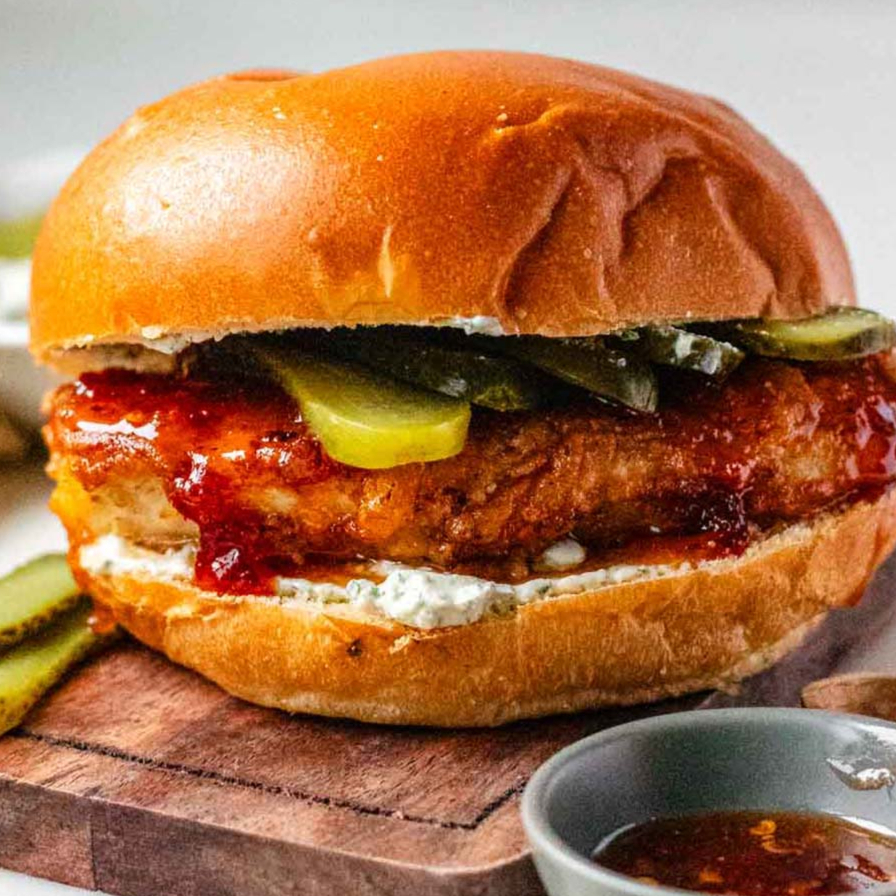 POLLO EMPANIZADO EN PANKO, BAÑADO EN HONEY SPICY, COLESLAW FRESCO Y ADEREZO DELA CASA