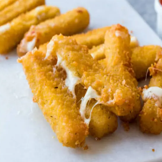 8 dedos de queso hechos a mano, acompañados de ranch y salsa pomodoro