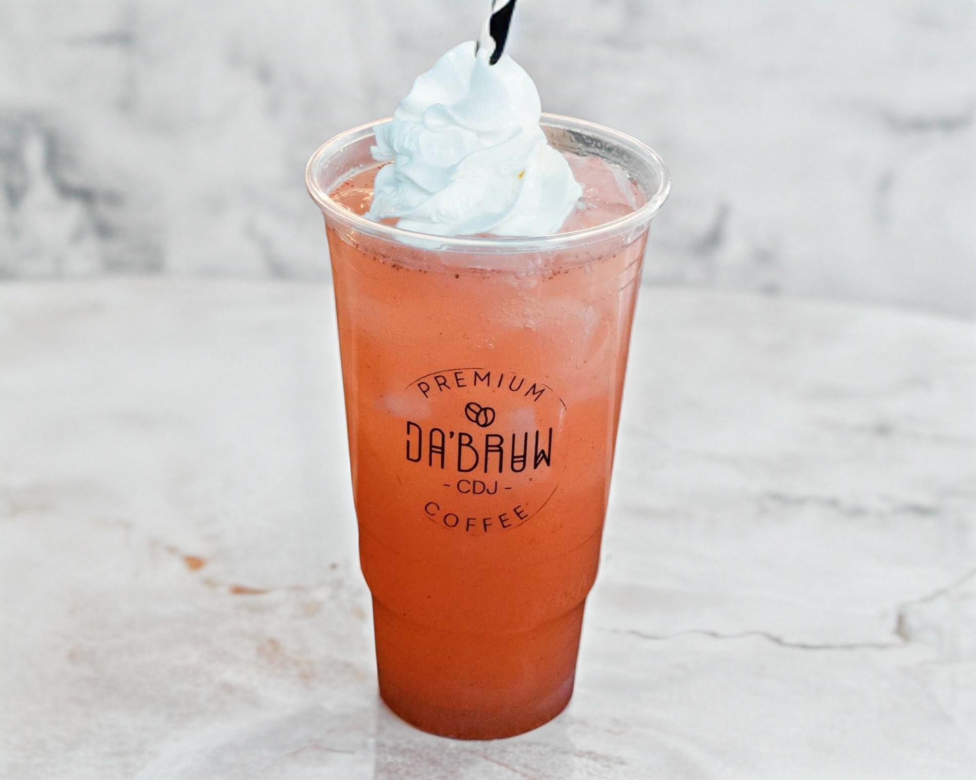 Bebida refrescante y efervescente de tu sabor favorito, cubierta con crema batida.