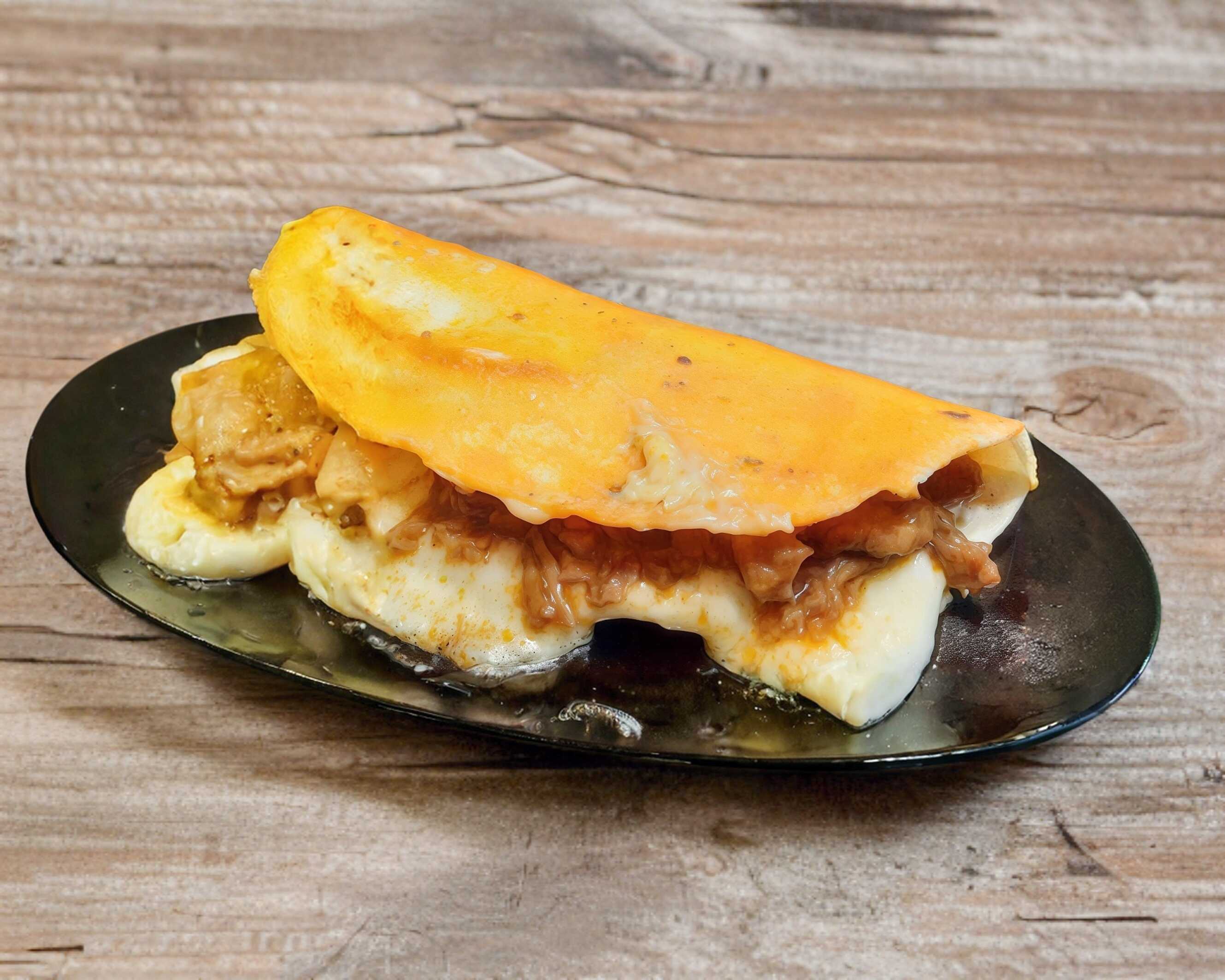 Tortilla de Harina, Aguacate, Birria, Queso + Consomé, Verduras, Salsa.
