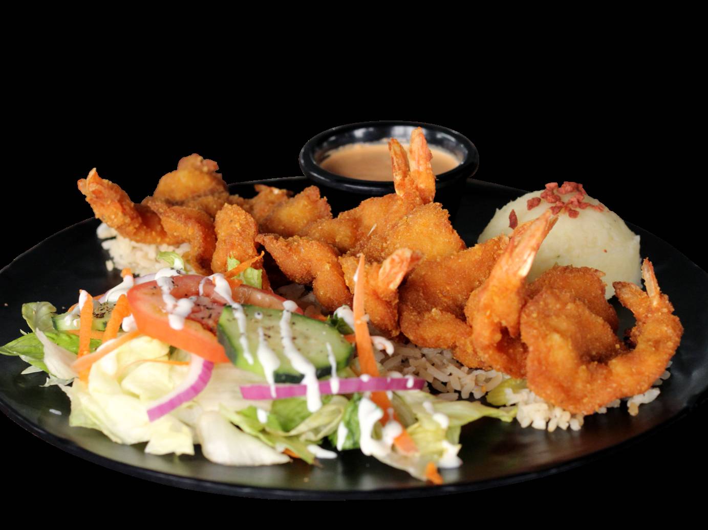 camarones empanizados acompanado en crema de cipotle