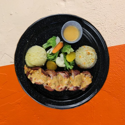 camarones banado en crema de chipocle con trosso de tocino