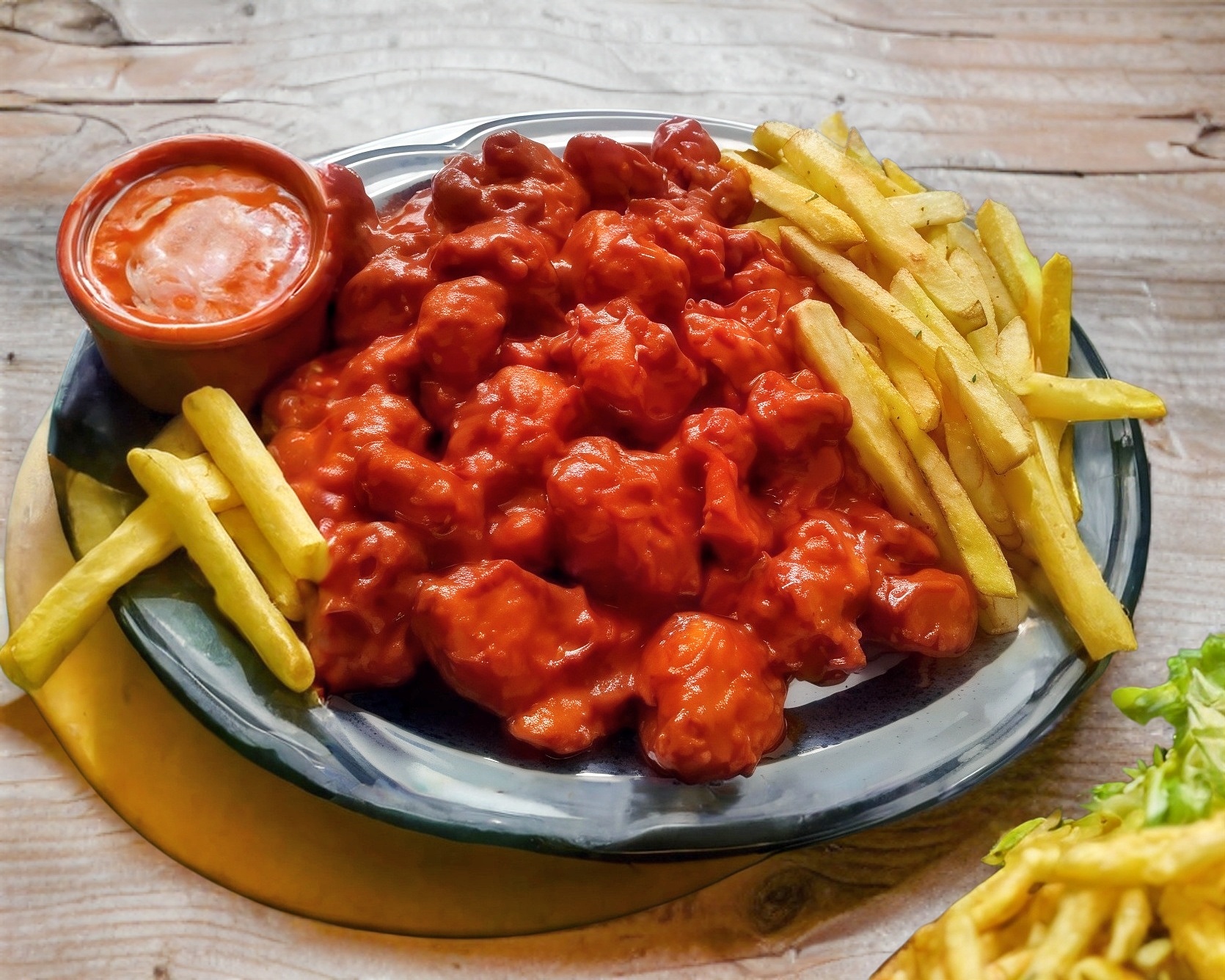300GR DE BONELESS Y 150GR DE PAPAS BAÑADOS EN SU SALSA FAVORITA