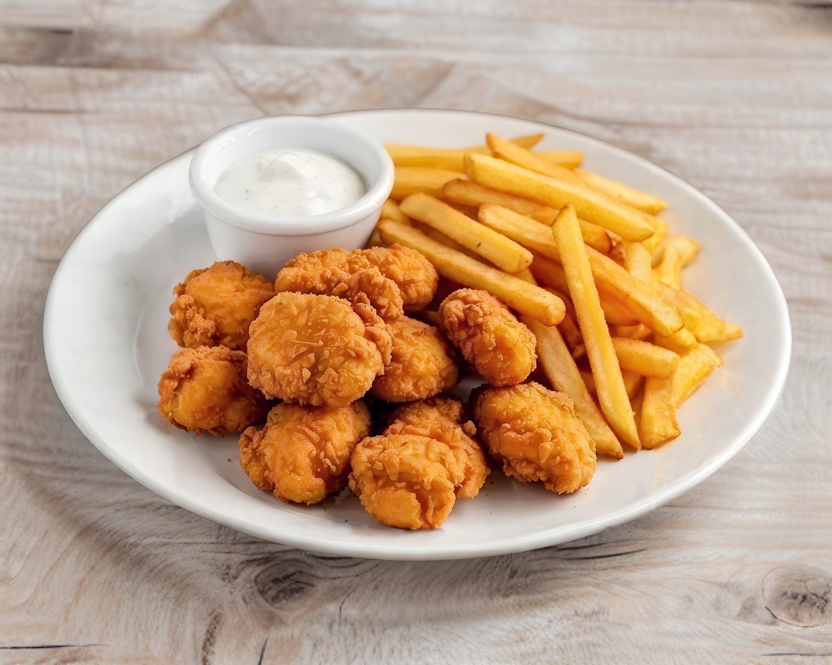 500 gramos de boneless acompañados de 150 gramos de papas fritas y bebida