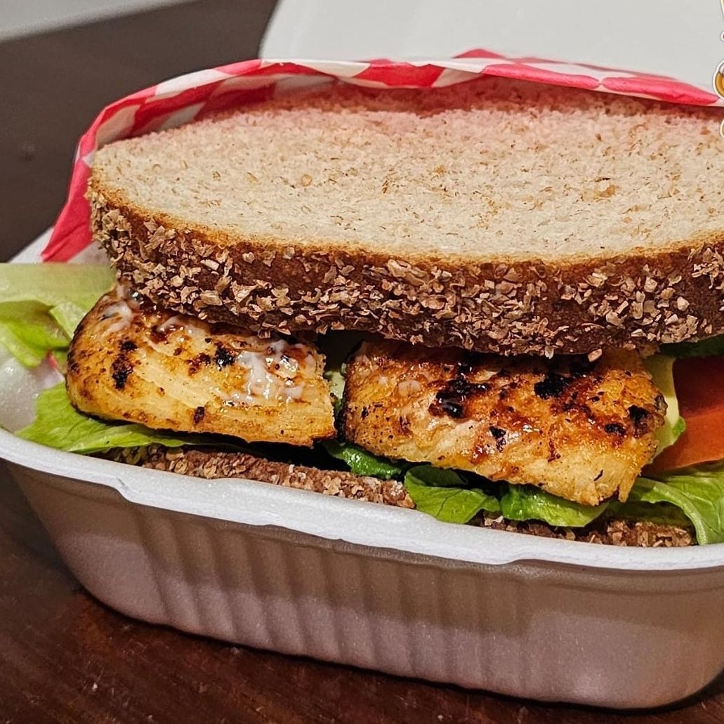 Pechuga de pollo, lechuga, tomate, cebolla morada y mayonesa