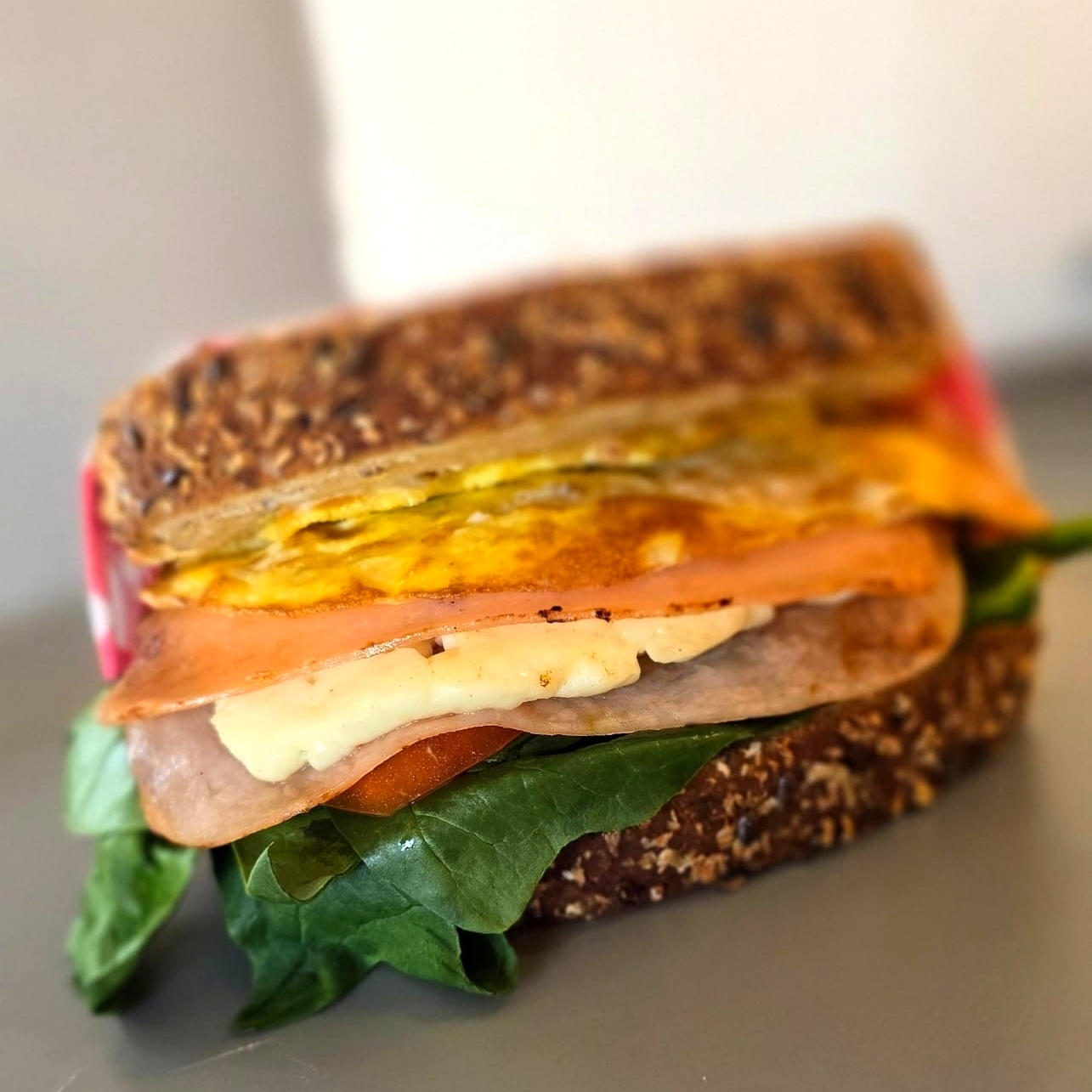Huevo, queso panela, jamon de pavo, espinaca y tomate