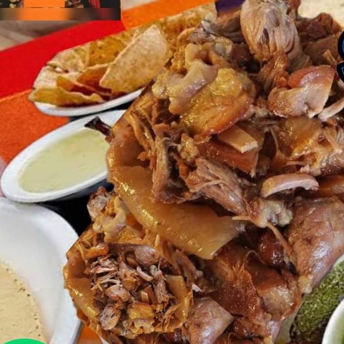sabroso chamorro frito en manteca de puerco estilo carnitas incluyen salsas tortillas limones cebollita