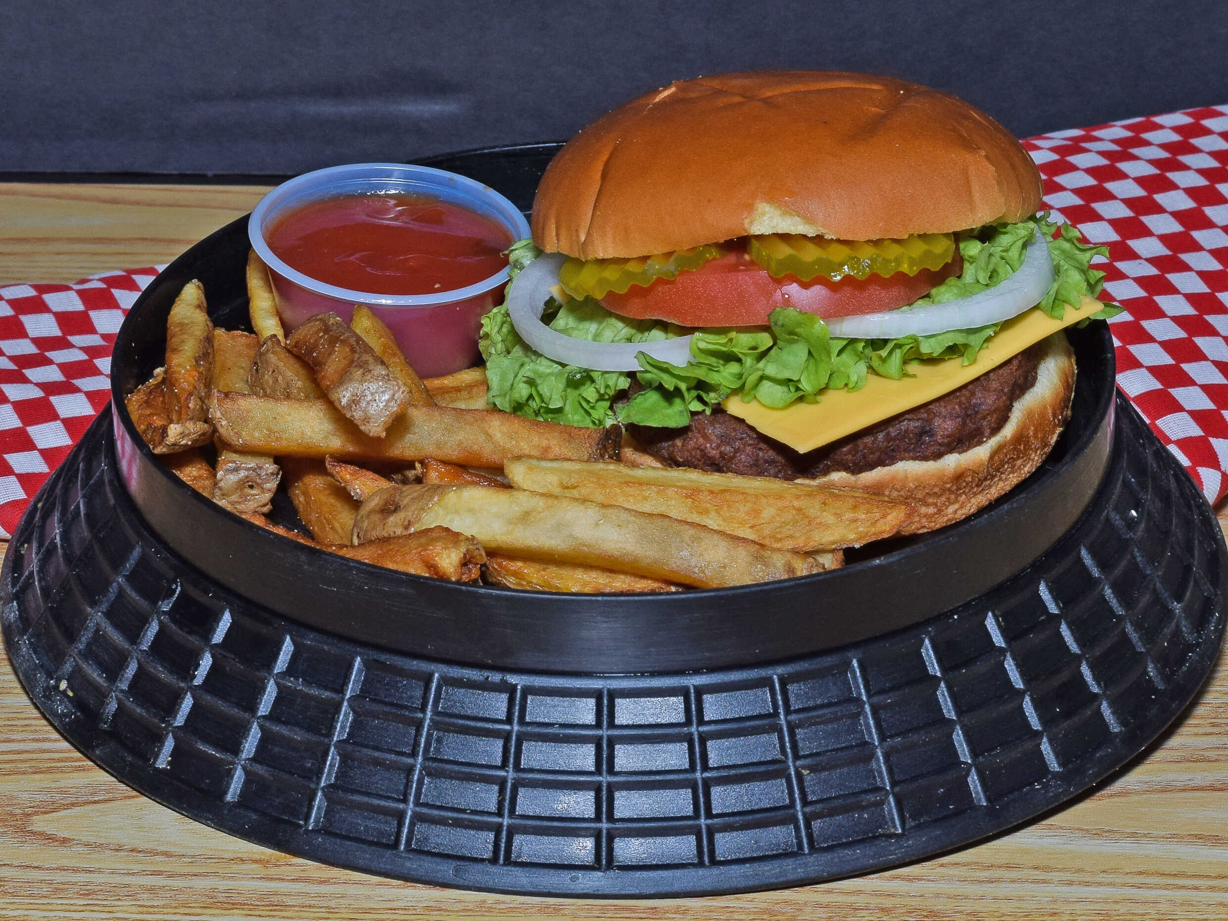 Hamburguesa de 100% sirloin, acompañada con papas clásicas chicas de corte natural. Lleva lechuga, tomate, pepinillos, mostaza, mayonesa y kétchup.