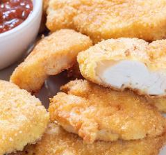 4 TIRAS RECIÉN HECHAS DE 100% PECHUGA DE POLLO, EMPANIZADAS Y LIGERAMENTE SAZONADAS A NUESTRO ESTILO, ACOMPAÑADAS CON PAPAS FRITAS CRUJIENTES, ADEREZO RANCH Y TU SALSA FAVORITA.