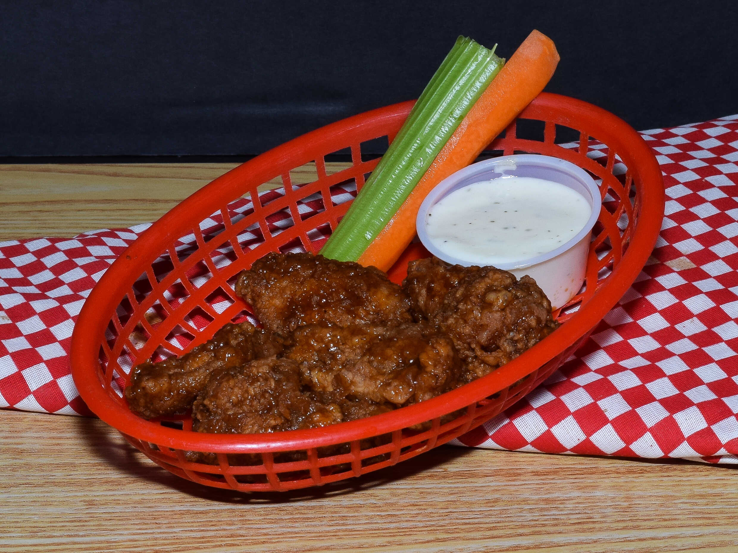 6 deliciosas alitas empanizadas al estilo de la casa, bañadas en 1 de nuestras salsas. Incluye papas fritas chicas (100grns), 1 refresco (355ml), 1 aderezo ranch (2oz), apio y zanahoria (1/1).