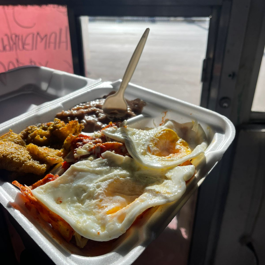 huevos al gusto, frijoles c/qso, chilaquiles rojos, y 1 guisado a elegir